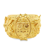 這款黃金手鐲,以精湛工藝雕琢出龍鳳呈祥的吉祥圖案,寓意美好,象徵著愛情的永恆與幸福。鐲身線條流暢,設計典雅,適合在重要場合佩戴,彰顯佩戴者的高貴品味與獨特魅力。是贈予親友或自用的上佳之選。