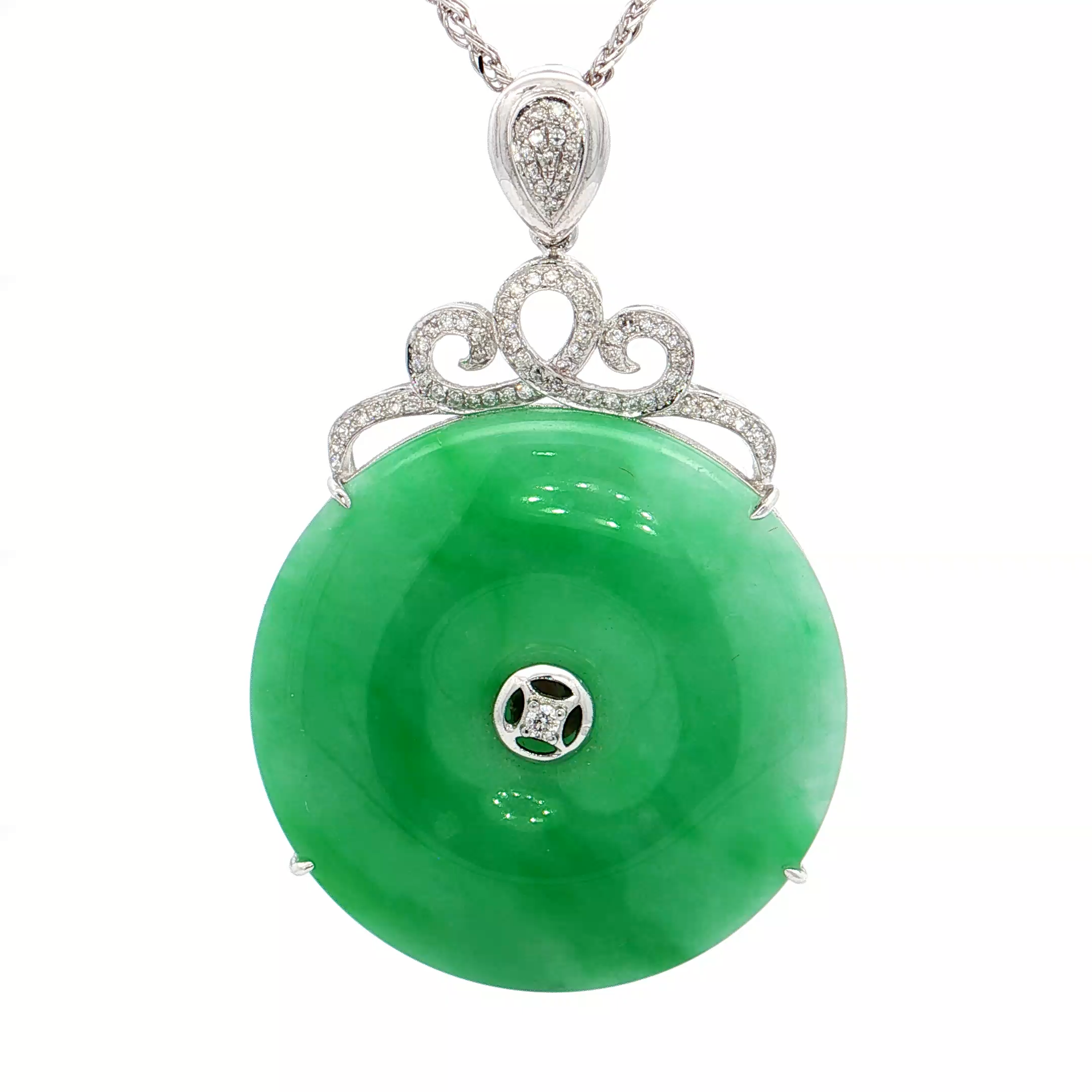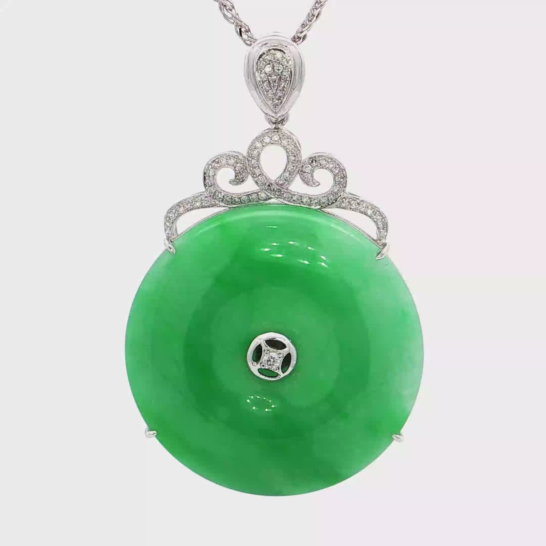 18K白色黃金天然翡翠鑽石吊墜