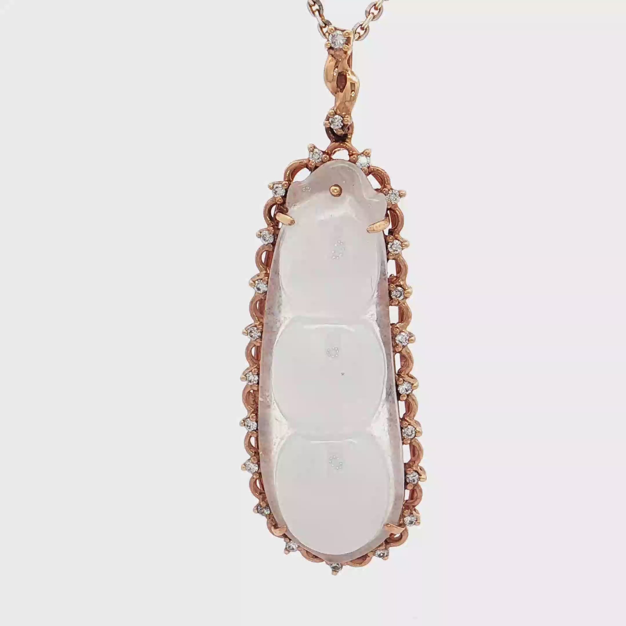 18K玫瑰黃金天然翡翠鑽石吊墜