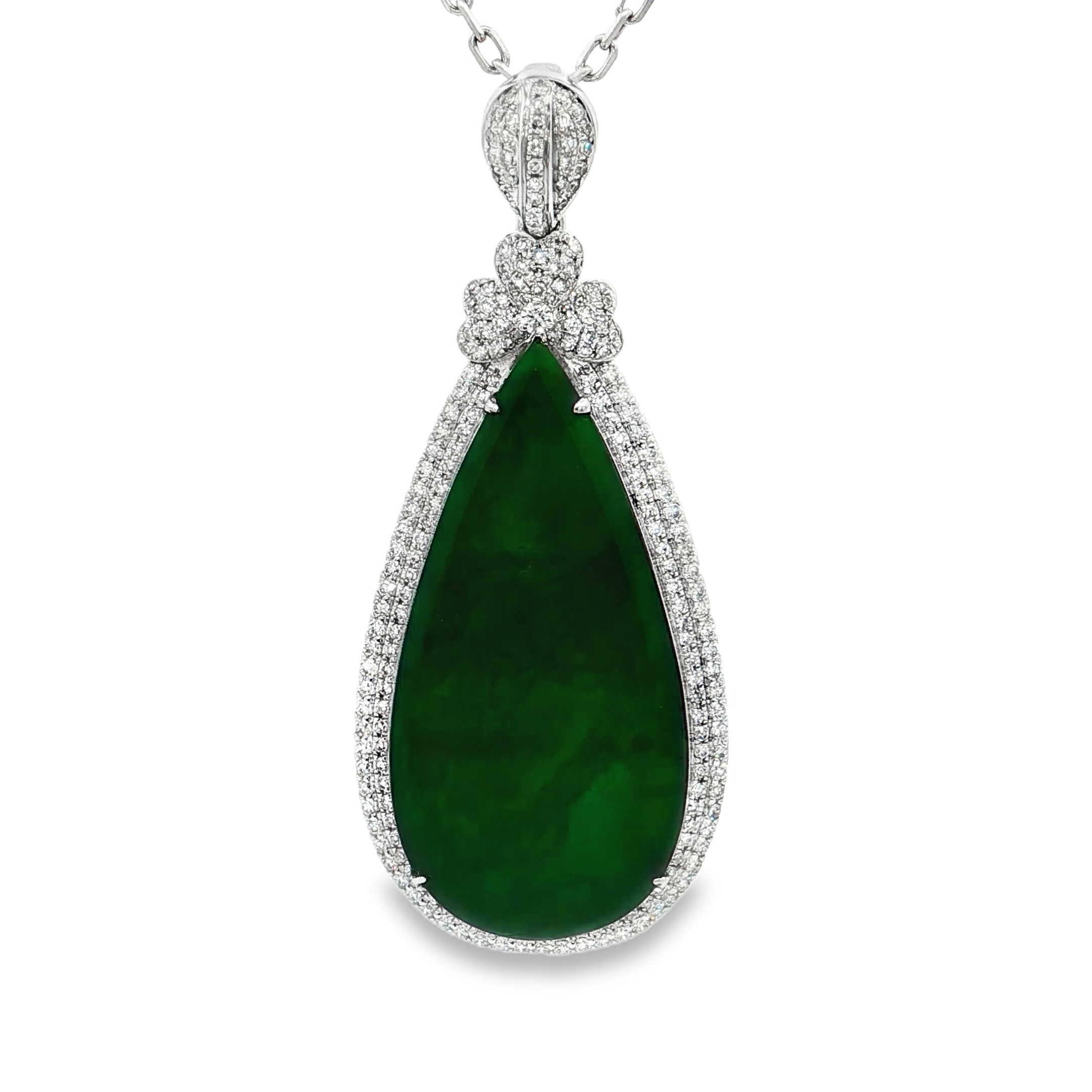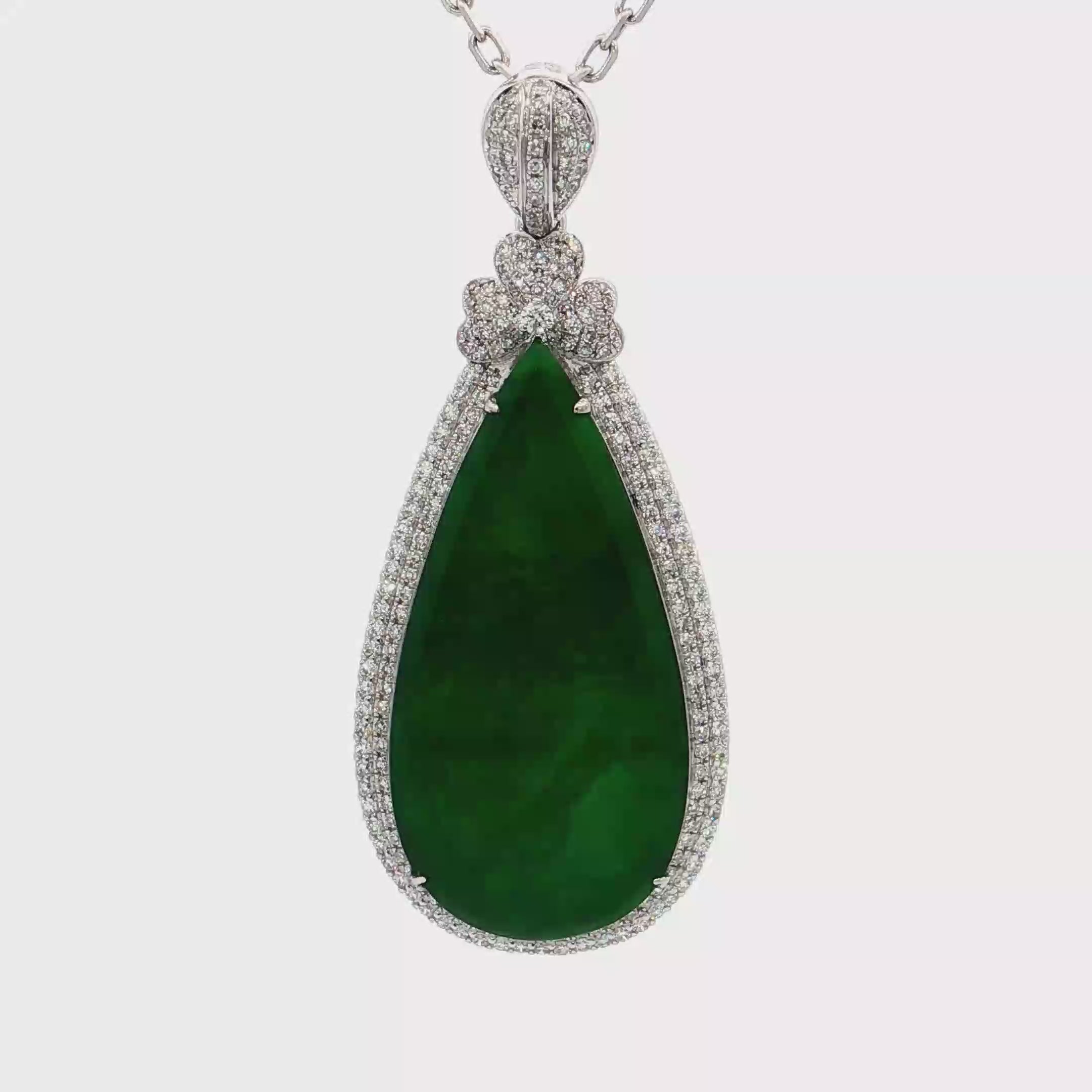 18K白色黃金天然翡翠鑽石吊墜
