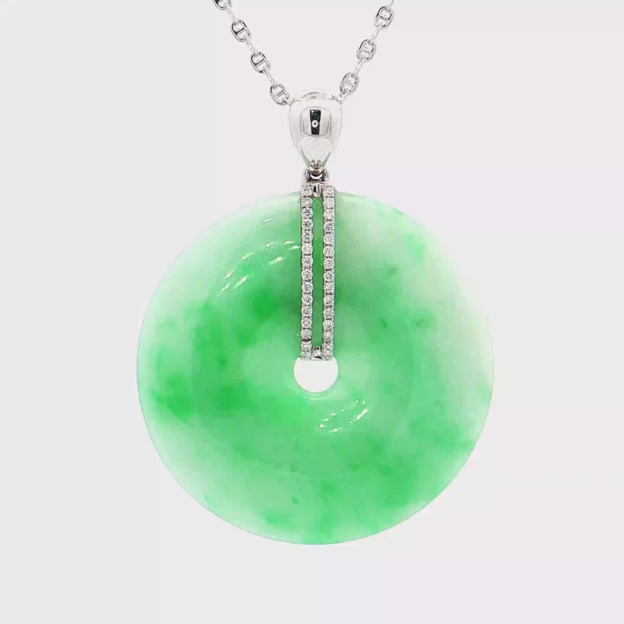 18K白色黃金天然翡翠鑽石吊墜