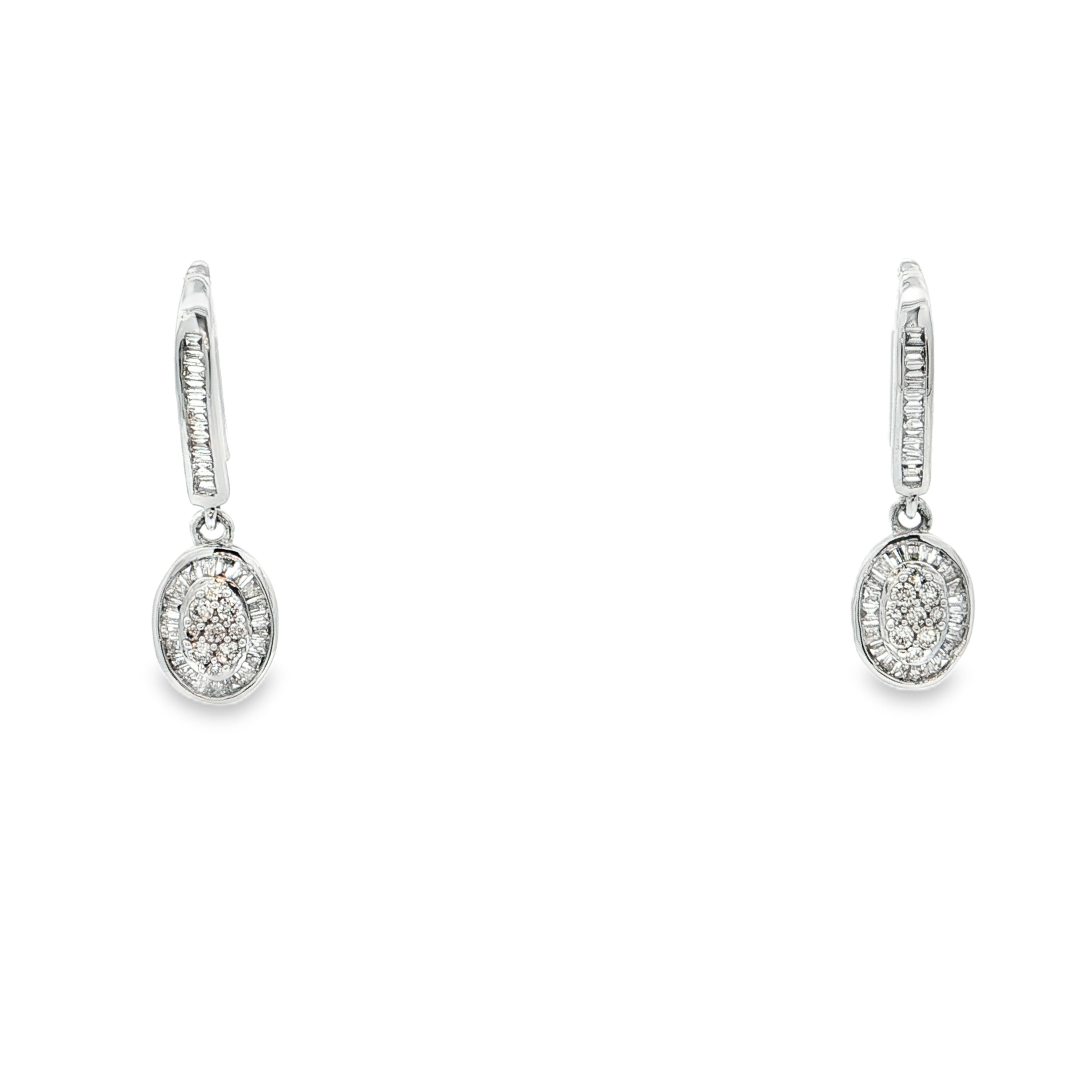這款精緻的垂墜耳環,以優雅的白色黃金打造,散發低調奢華感。耳環鑲嵌著明亮式切割的橢圓形鑽石,璀璨奪目。鑽石排列精巧,提升整體光彩,完美展現女性的優雅氣質。適合各種場合配戴,為您的造型增添一抹精緻的亮點。
