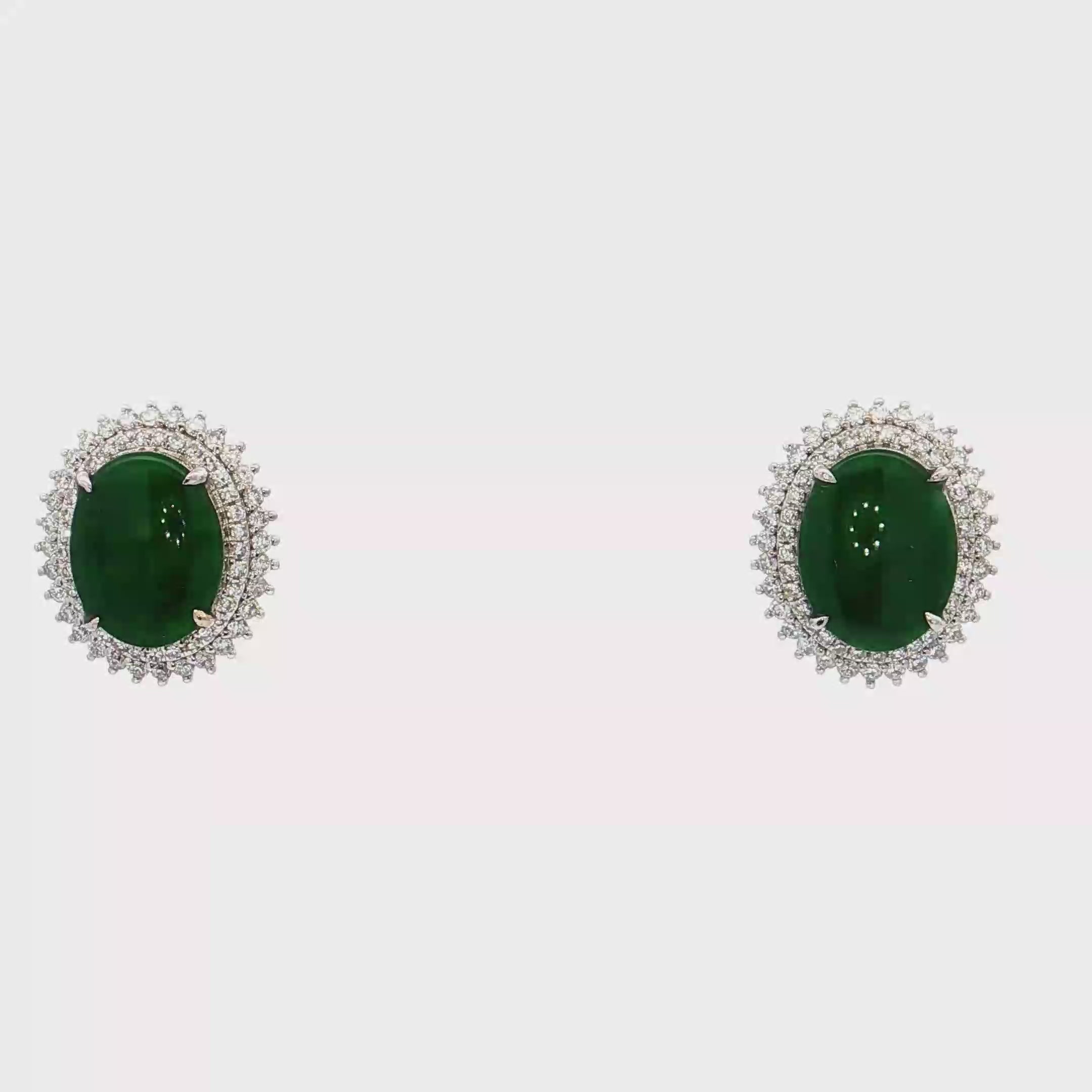 這款耳釘以精湛的工藝將溫潤的橢圓形翡翠鑲嵌於精緻的白色金屬底座上,凸顯了翡翠飽滿的色澤與光澤。翡翠的弧面切割展現出其獨特的質感,搭配簡約的設計,更顯優雅大方。適合日常佩戴,為您的造型增添一抹東方韻味。