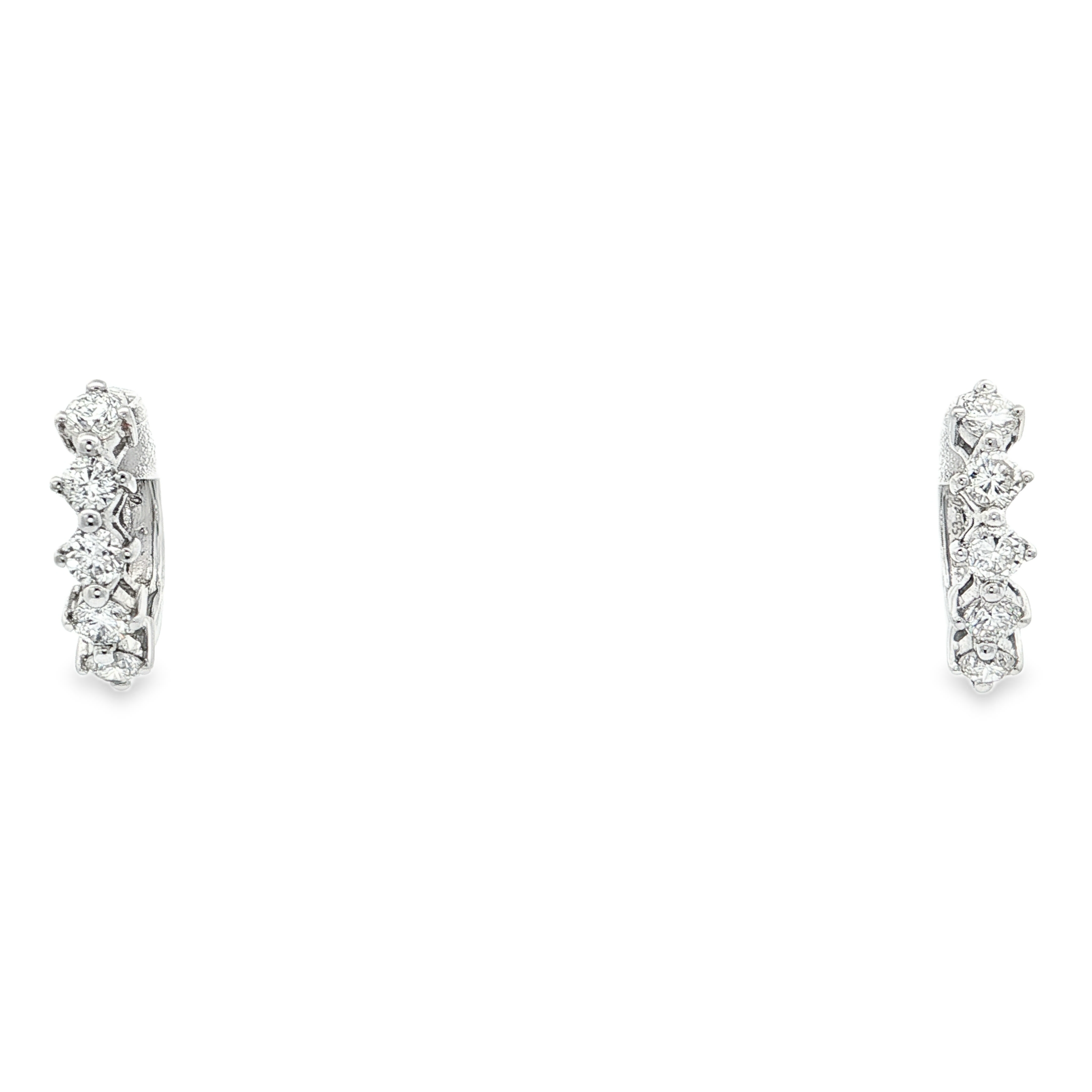 這款精緻的白色K金耳環,採用閃耀的圓形明亮式切割鑽石,鑲嵌於優雅的銀質底座上。鑽石火彩奪目,呈現精湛的切割工藝。簡約的設計風格,完美襯托女性的優雅氣質,適合日常配戴,展現低調奢華品味。