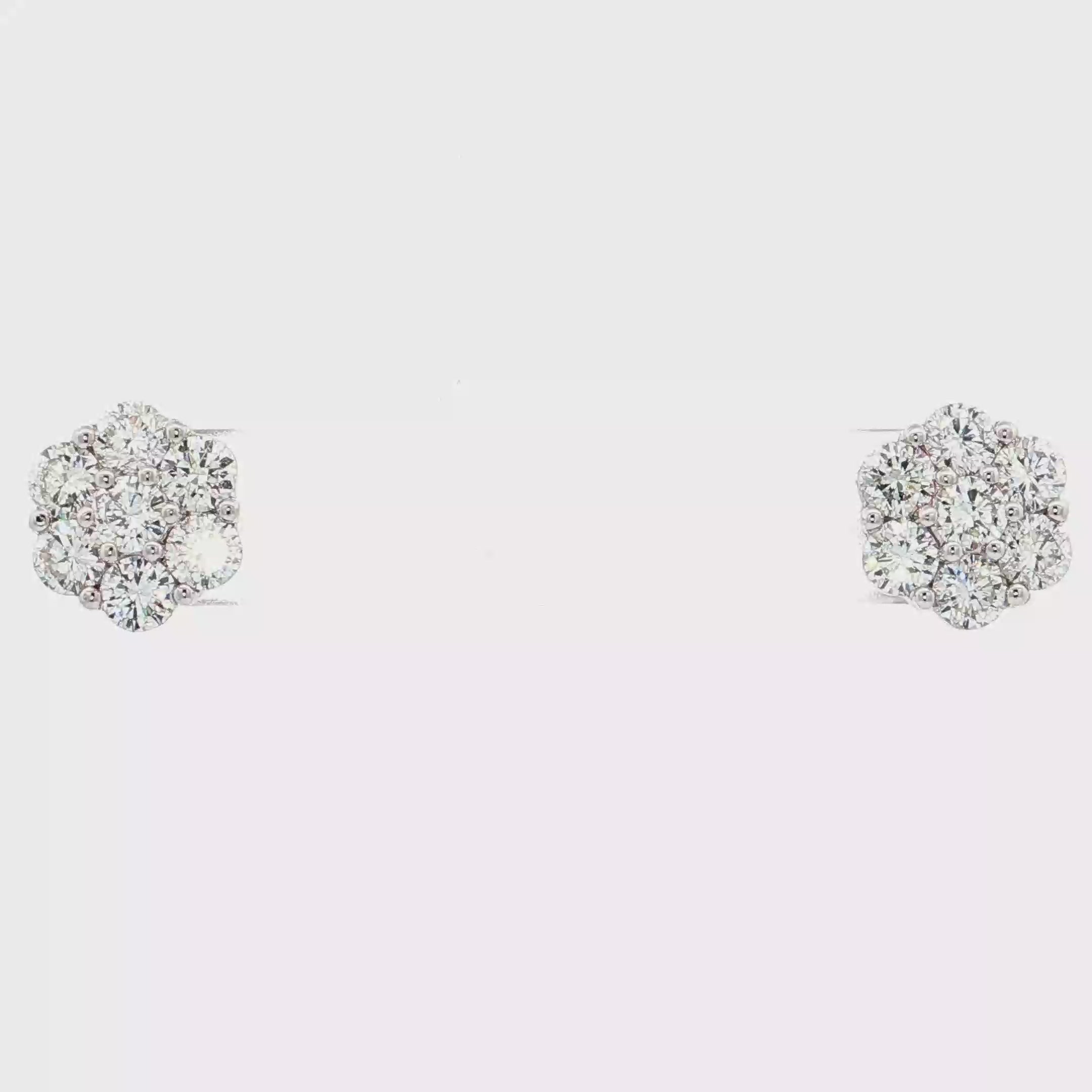 這款精緻的18K白金耳釘,以經典的圓形明亮式切割鑽石為主石,閃耀奪目。鑽石排列精巧,呈現出優雅的花簇造型,倍增視覺效果。適合日常佩戴,為您的造型增添一抹奢華氣息。