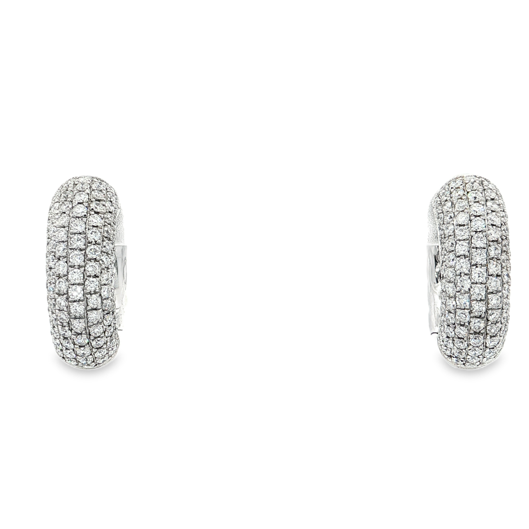這款精緻的圈形耳環採用亮麗的圓形切割鑽石,鑲嵌於優雅的18K白金底座上。鑽石的明亮光芒與白金的光澤相互輝映,突顯出耳環的精湛工藝和奢華質感。適合日常佩戴,也能為特殊場合增添光彩,是您珠寶盒中不可或缺的珍品。