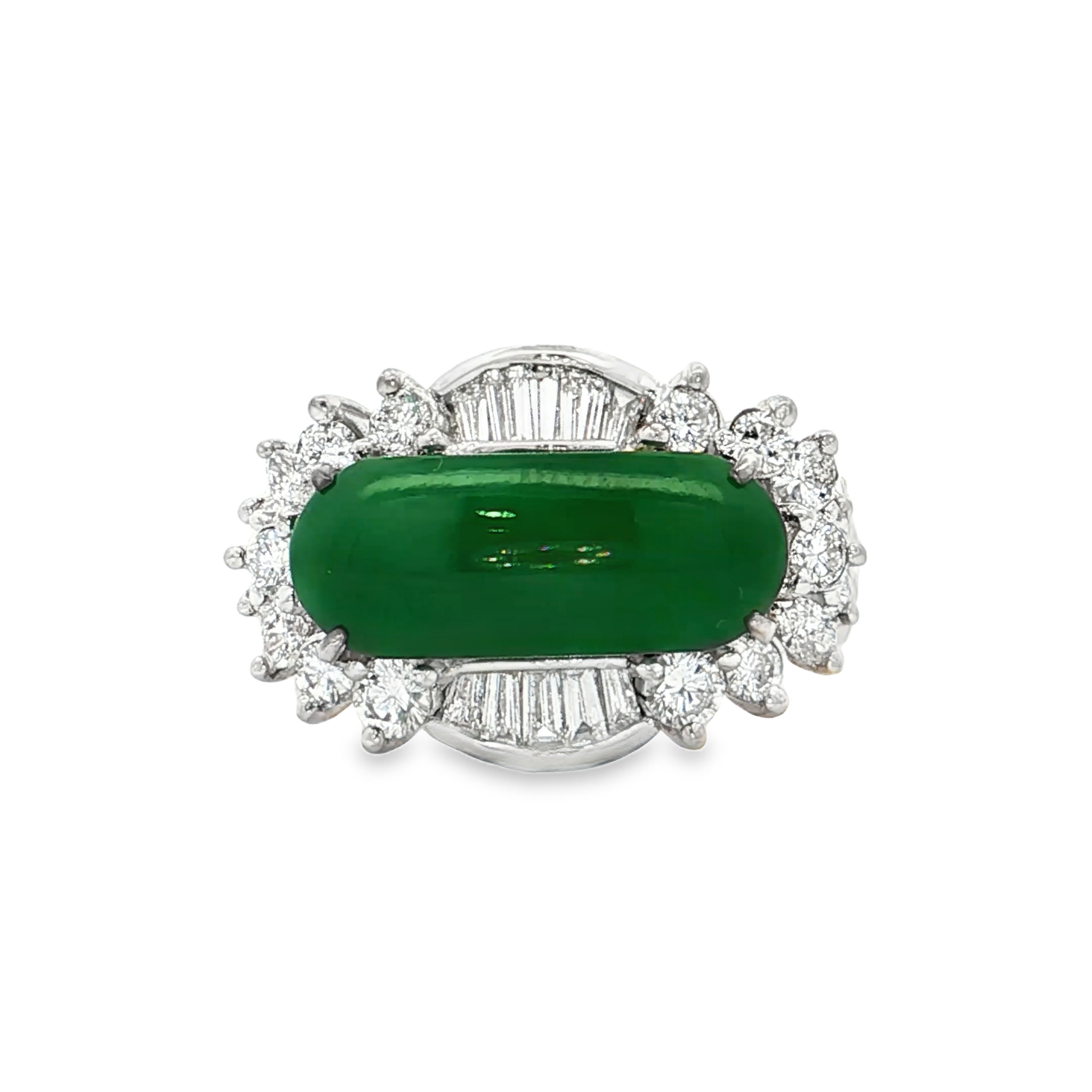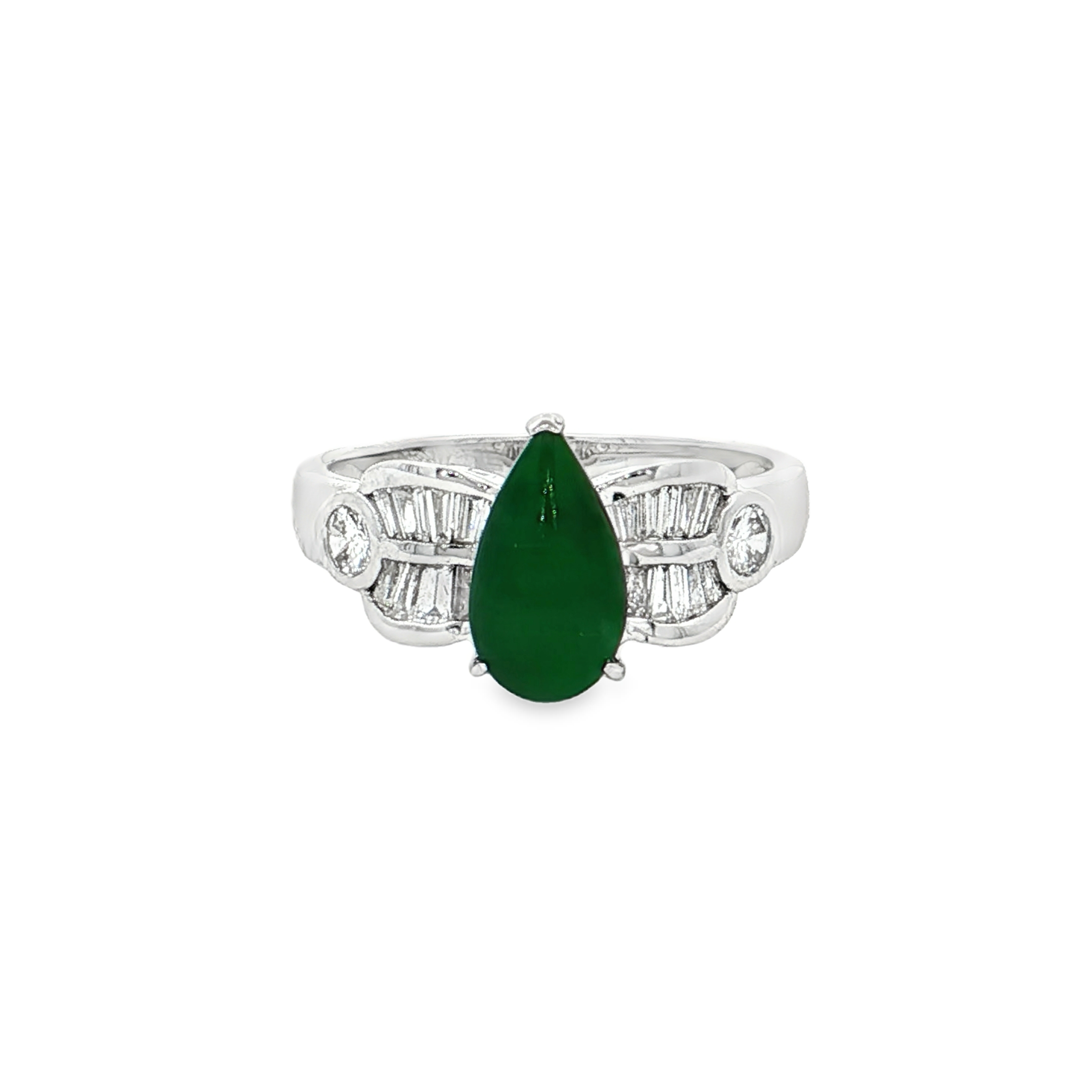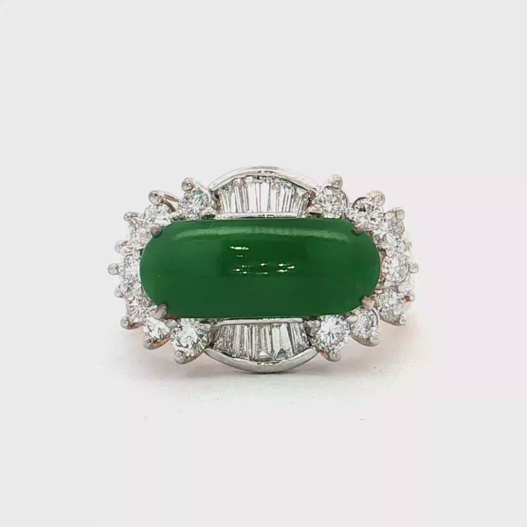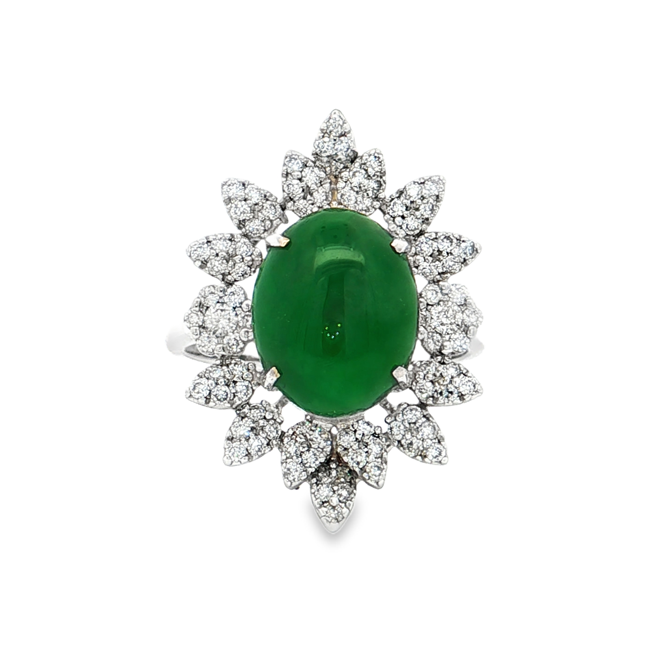 18K白色黃金天然翡翠鑽石戒指