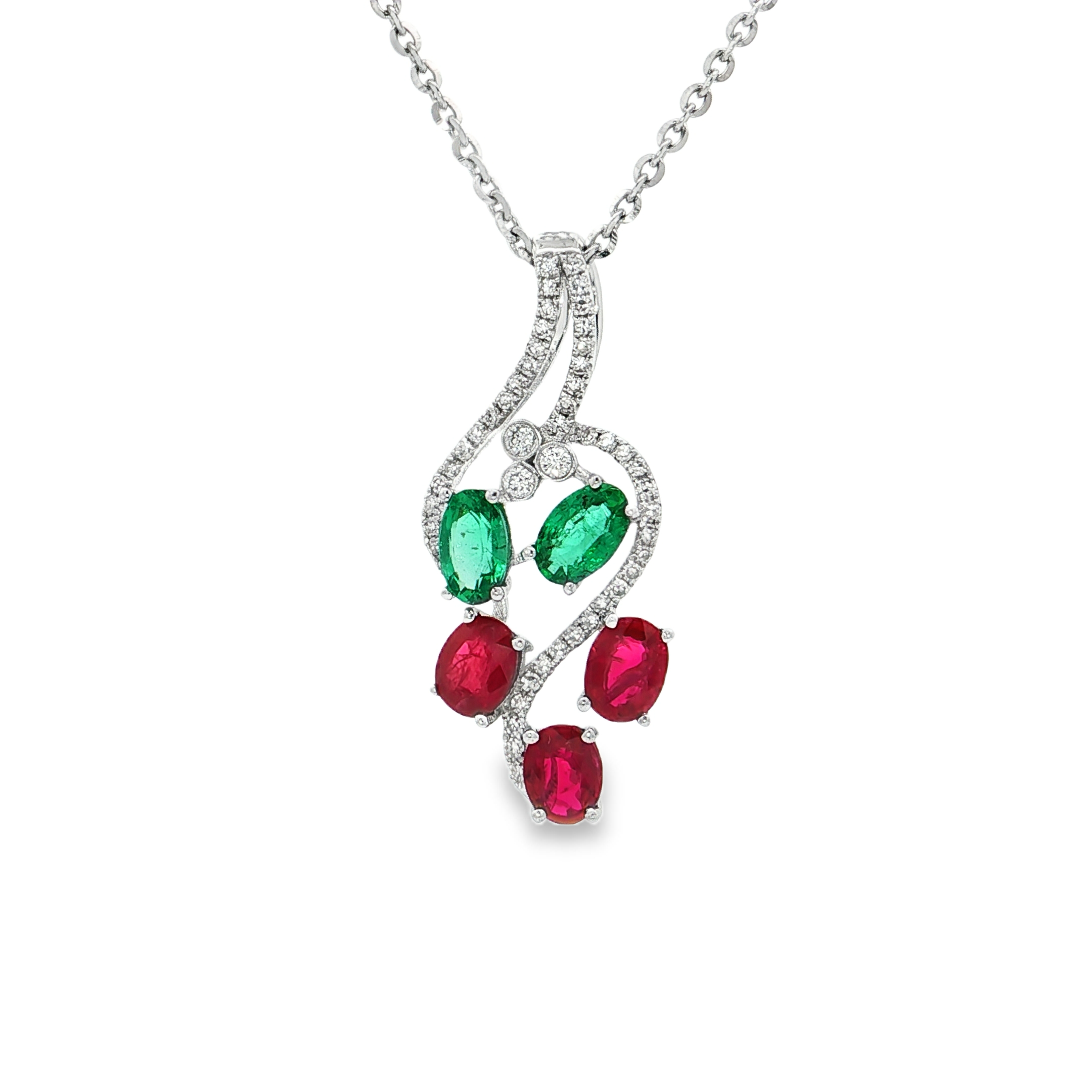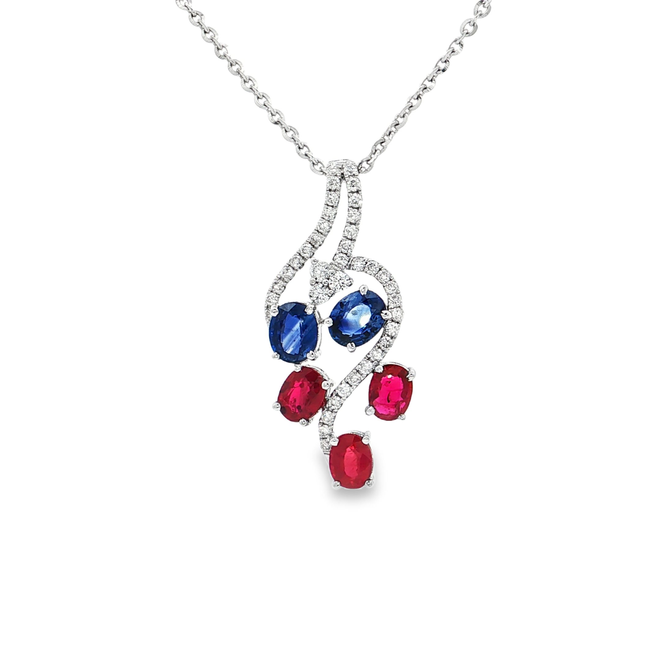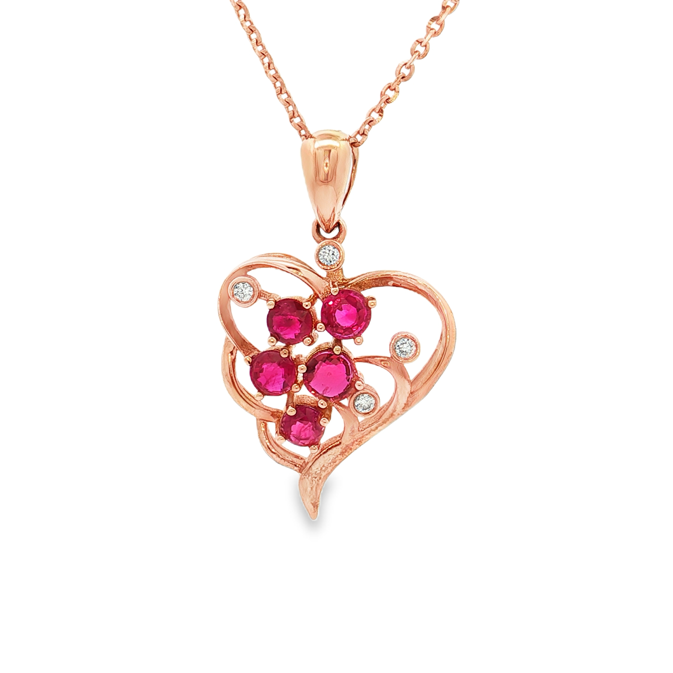 18K玫瑰黃金天然紅寶石鑽石吊墜