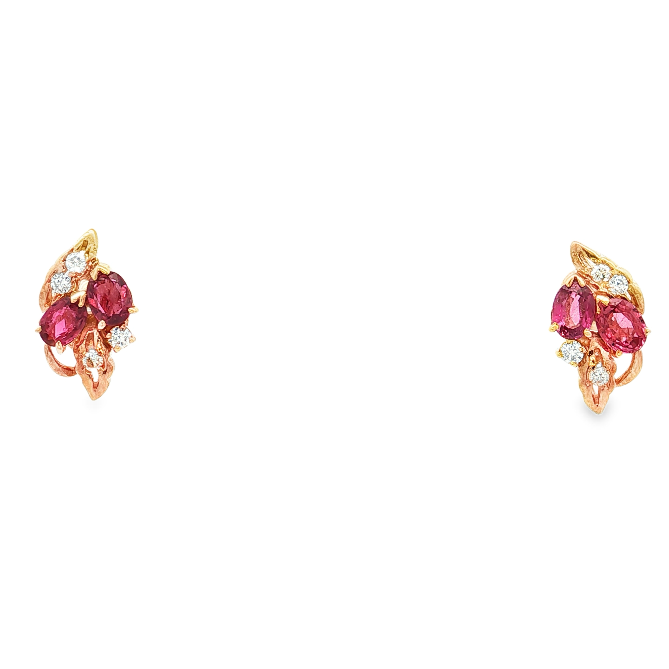 14K黃色黃金天然紅寶石鑽石耳環