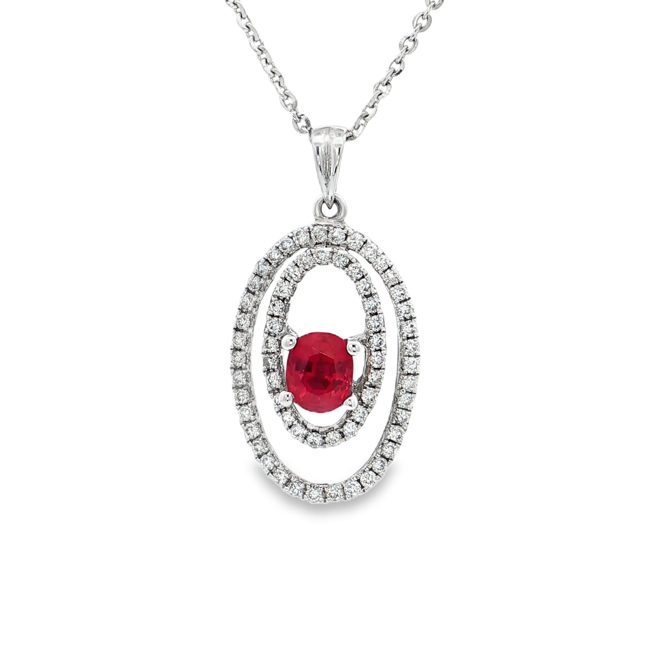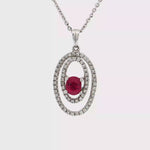 紅寶石色澤飽滿,光彩照人,其紅色調更顯熱情奔放。吊墜設計精巧,主石周圍環繞著精緻的銀色鑲嵌,更突顯了紅寶石的璀璨光芒。鏈條設計簡約優雅,整體造型經典時尚,適合各種場合配戴,展現出配戴者的高貴品味。