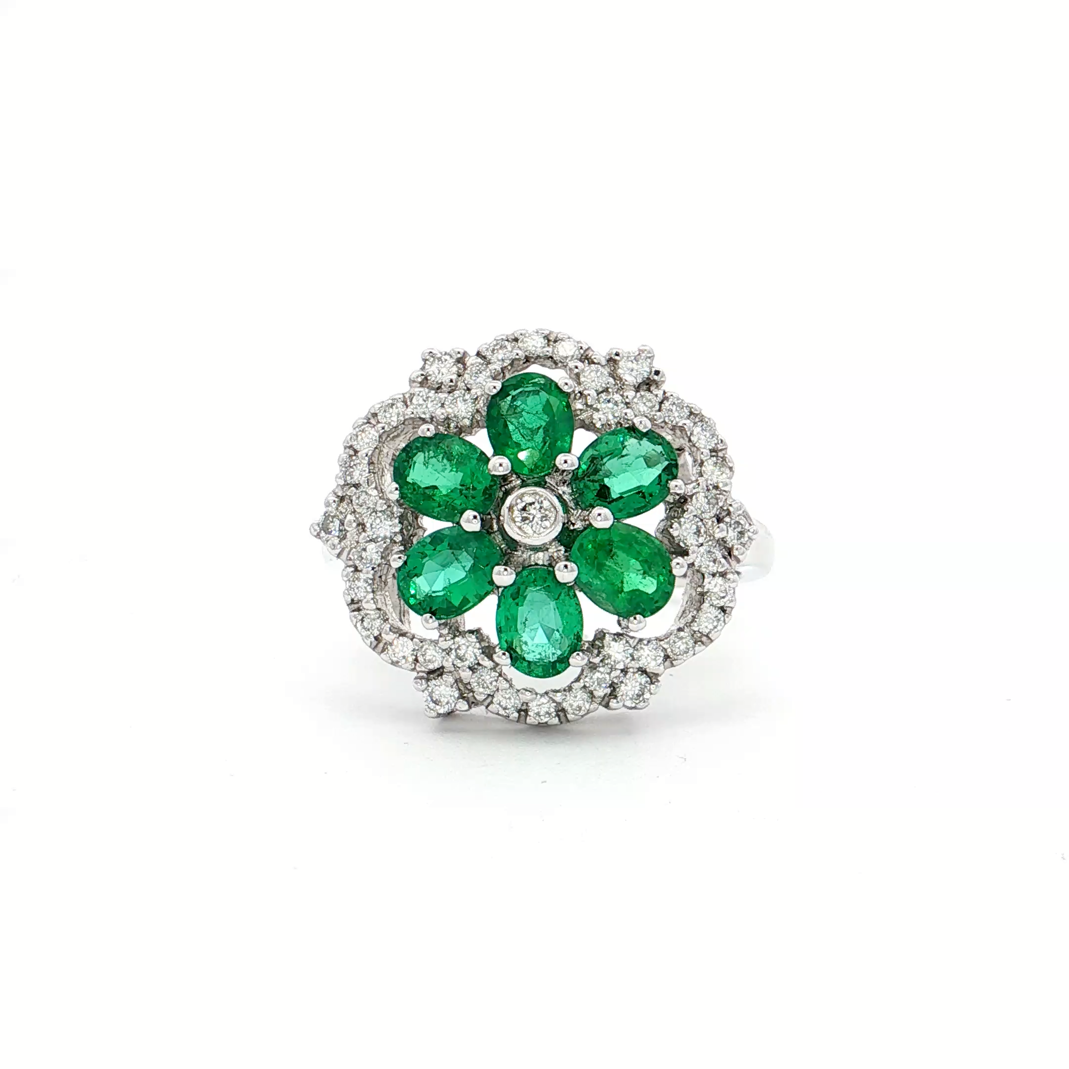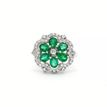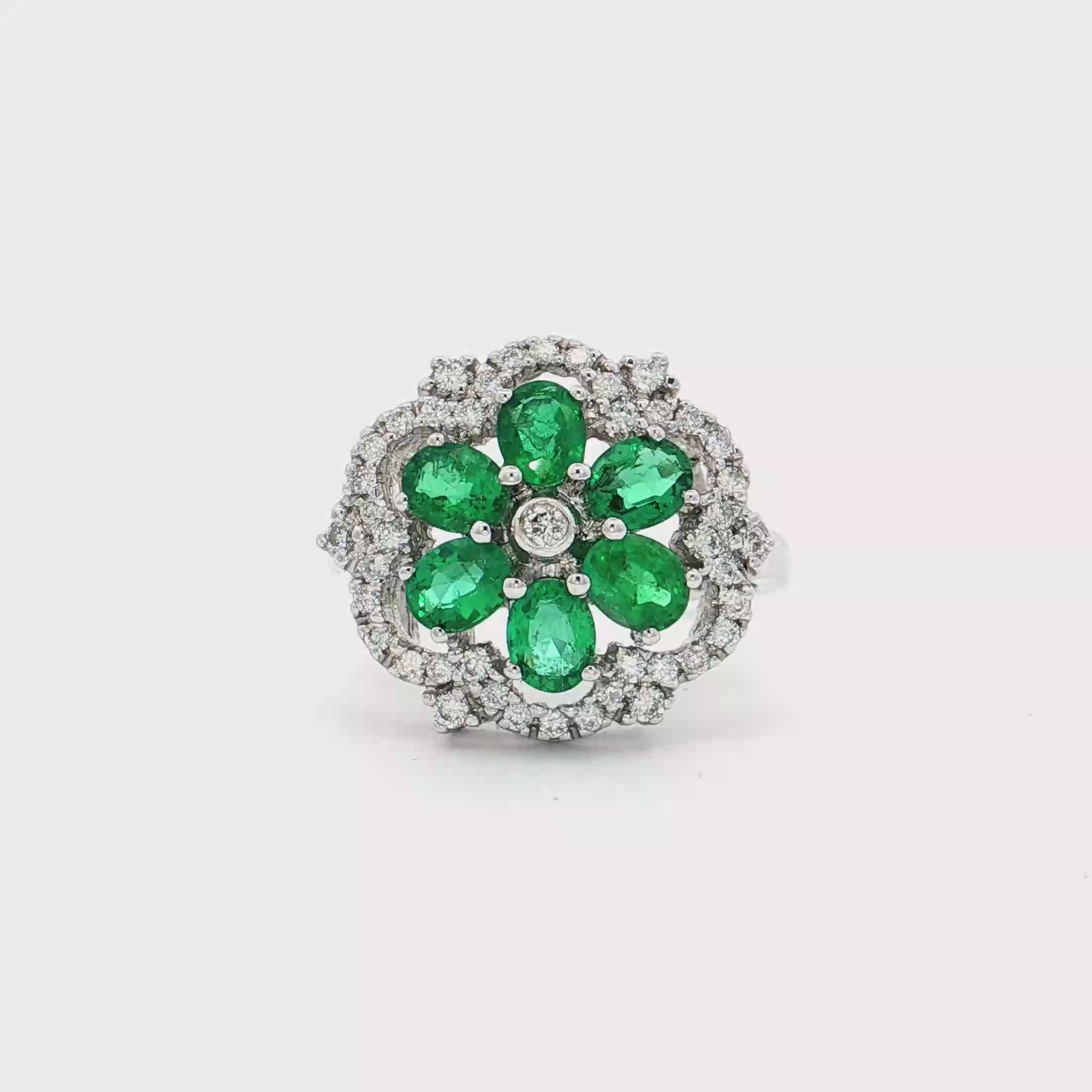 18K白色黃金天然祖母綠鑽石戒指