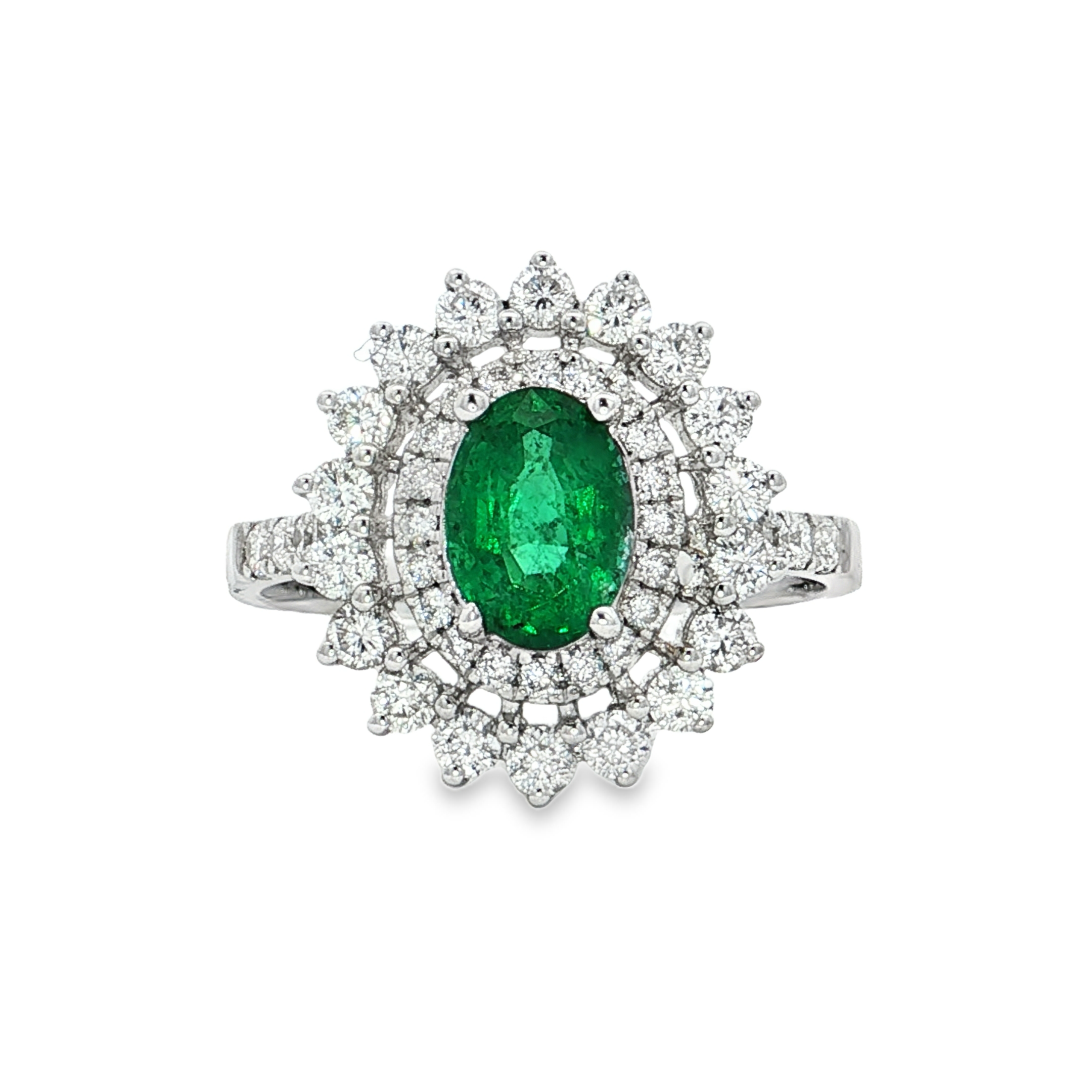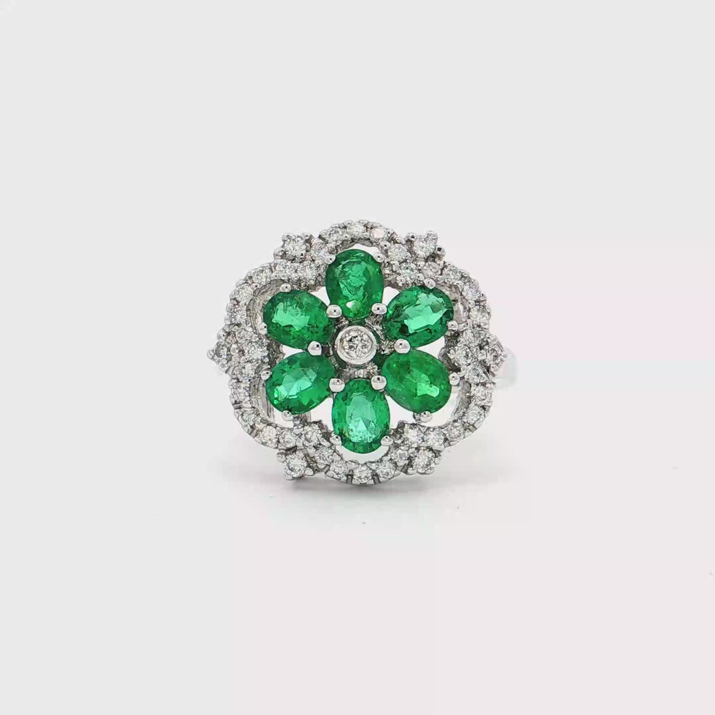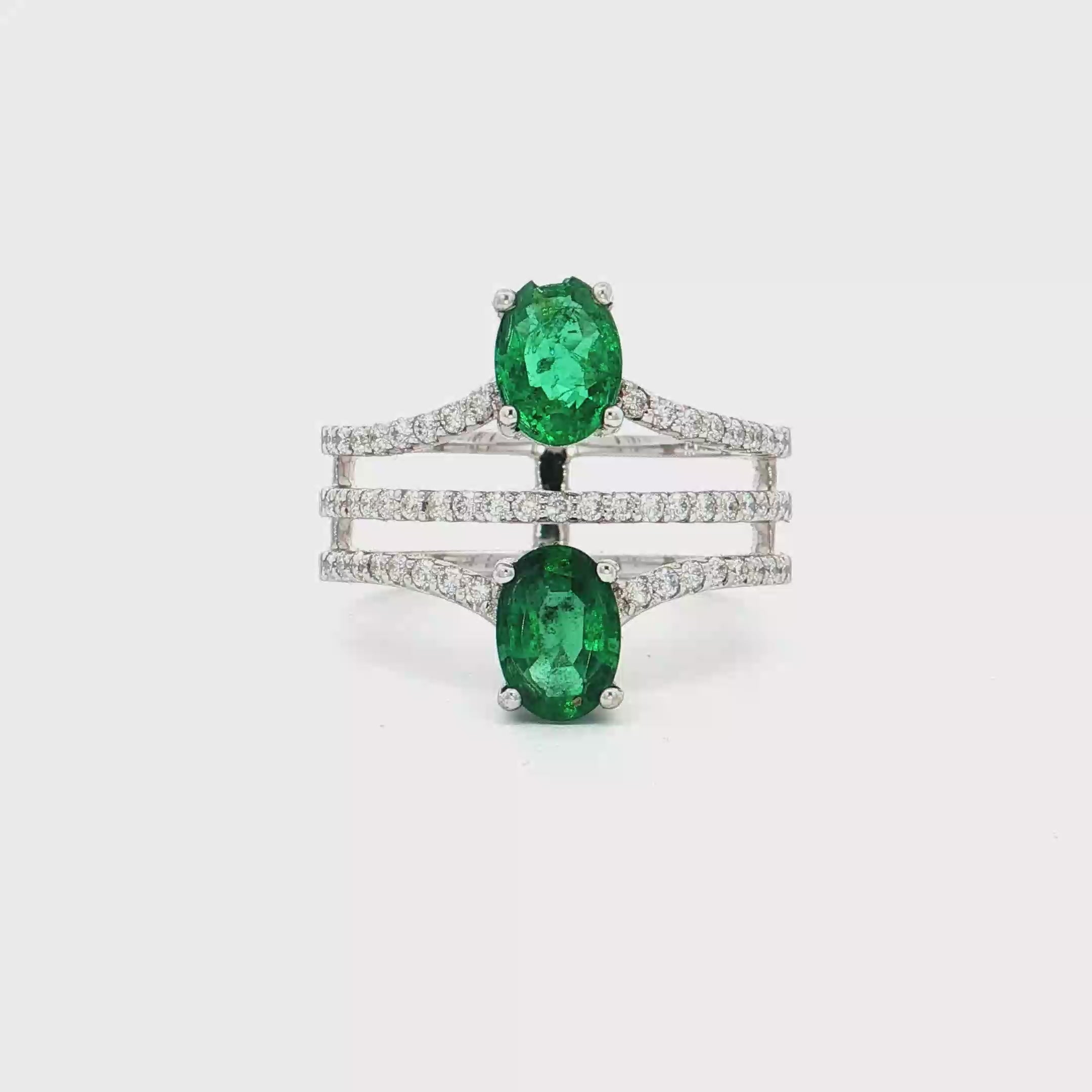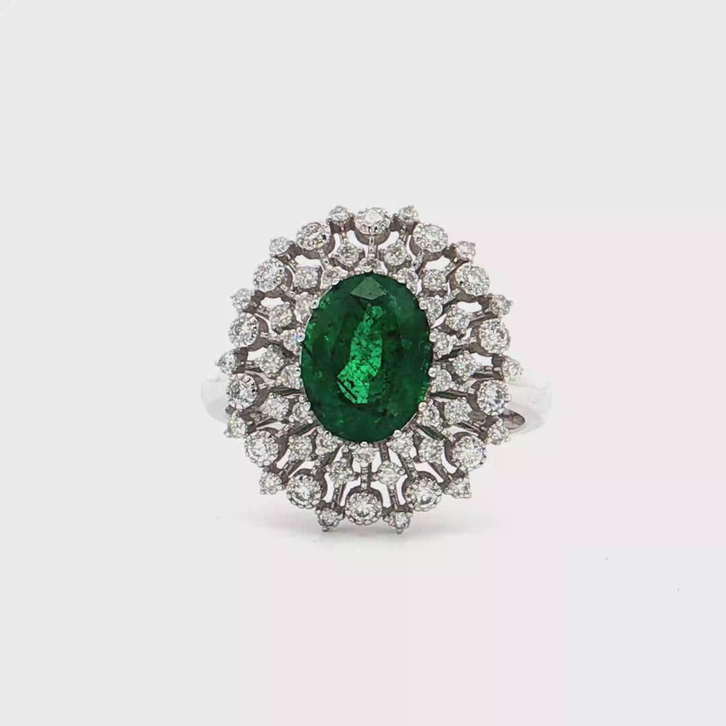 18K白色黃金天然祖母綠鑽石戒指