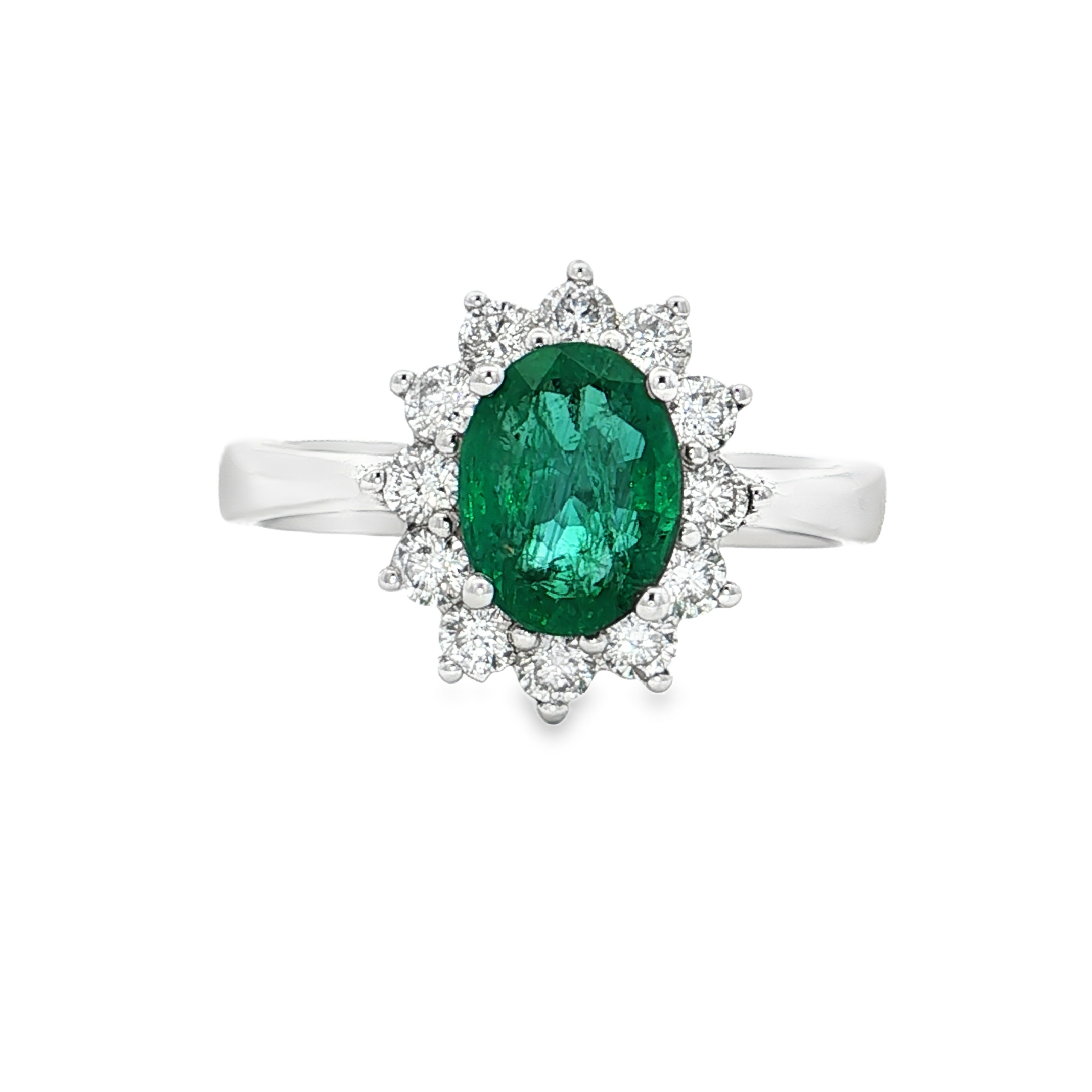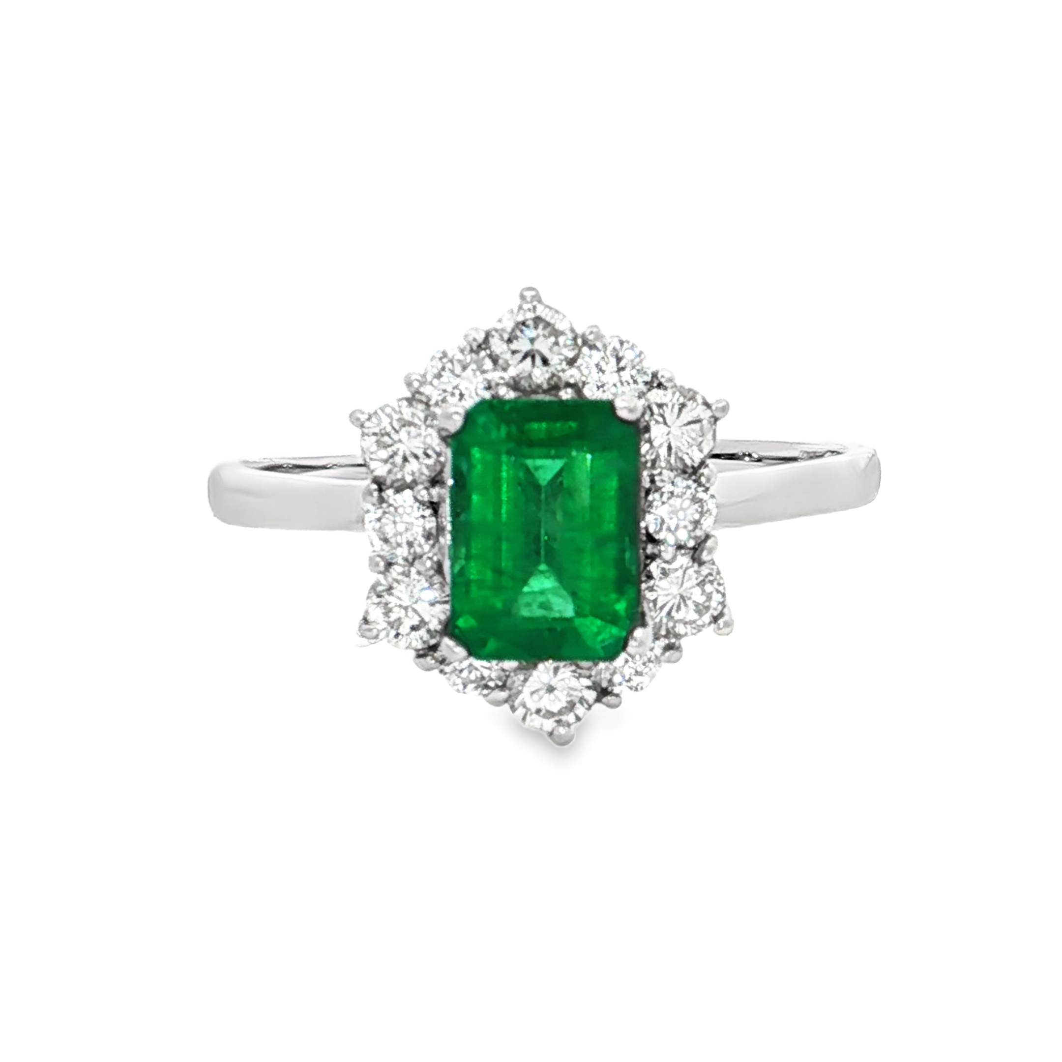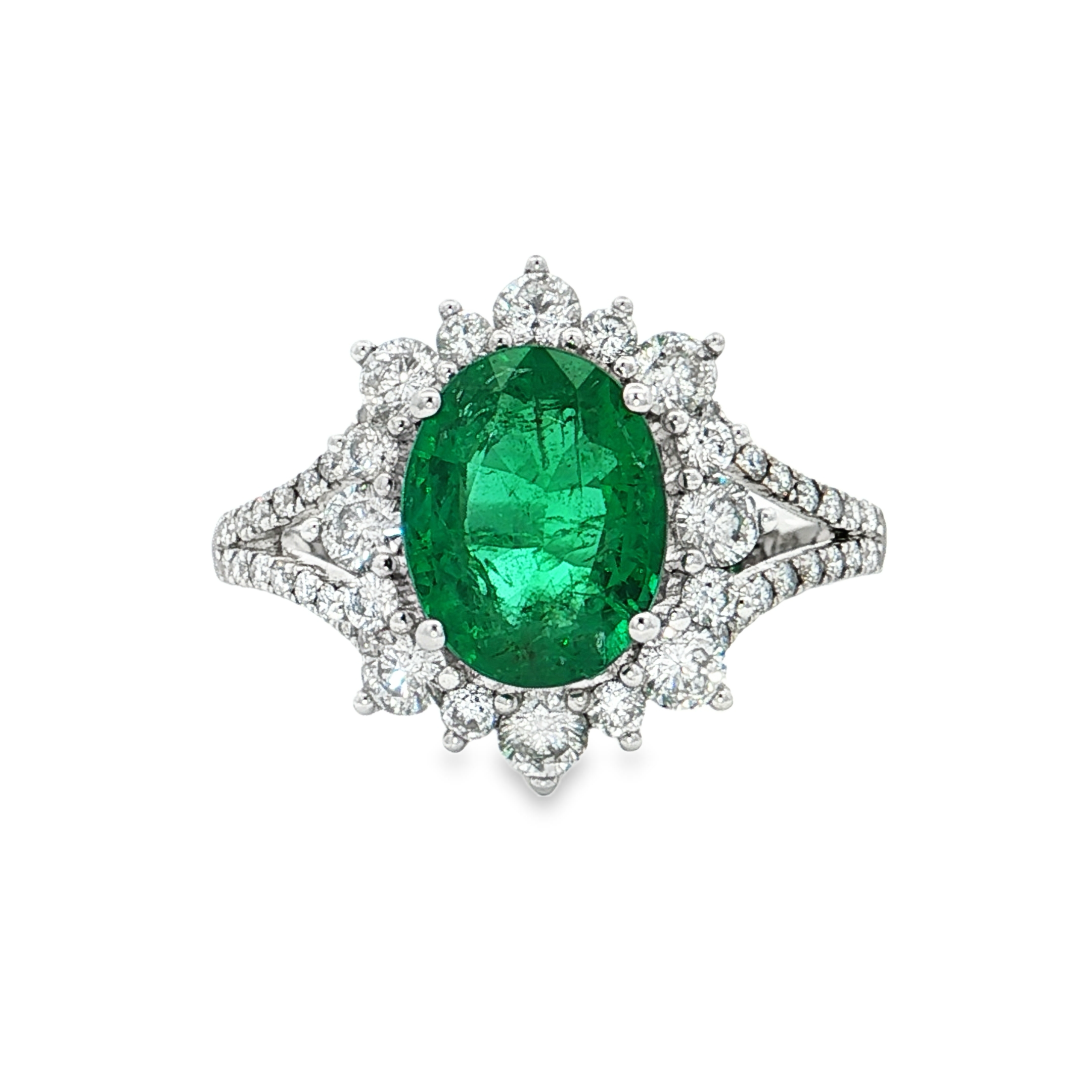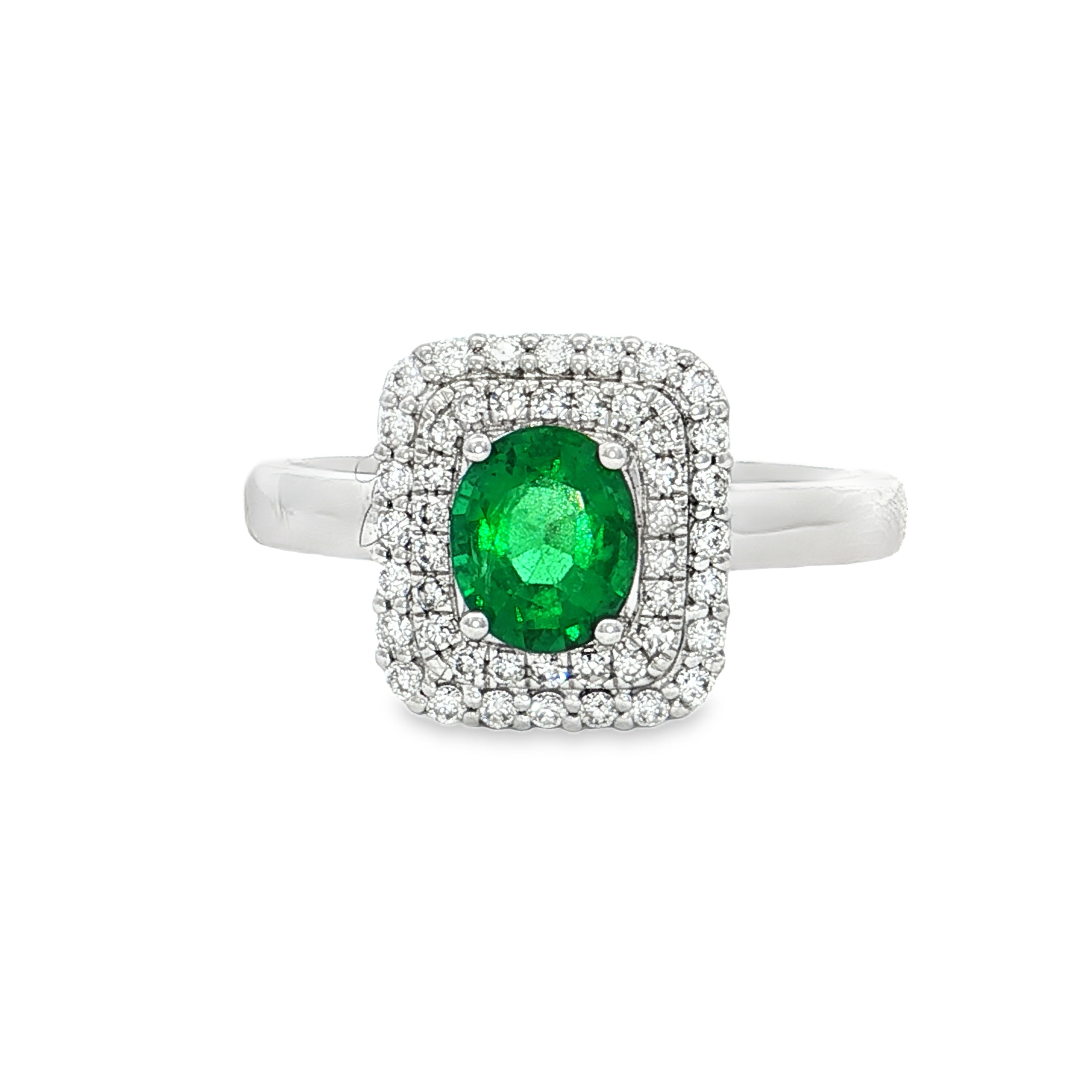18K白色黃金天然祖母綠鑽石戒指