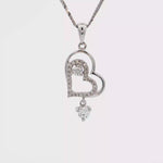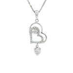 這款精緻的純18K金吊墜項鍊,以其獨特的心形設計和閃耀的圓形明亮式切割鑽石而著稱。白金色的光澤增添了現代感,精湛的切割工藝確保了鑽石的極致光芒。適合日常佩戴,也為特殊場合增添亮點。