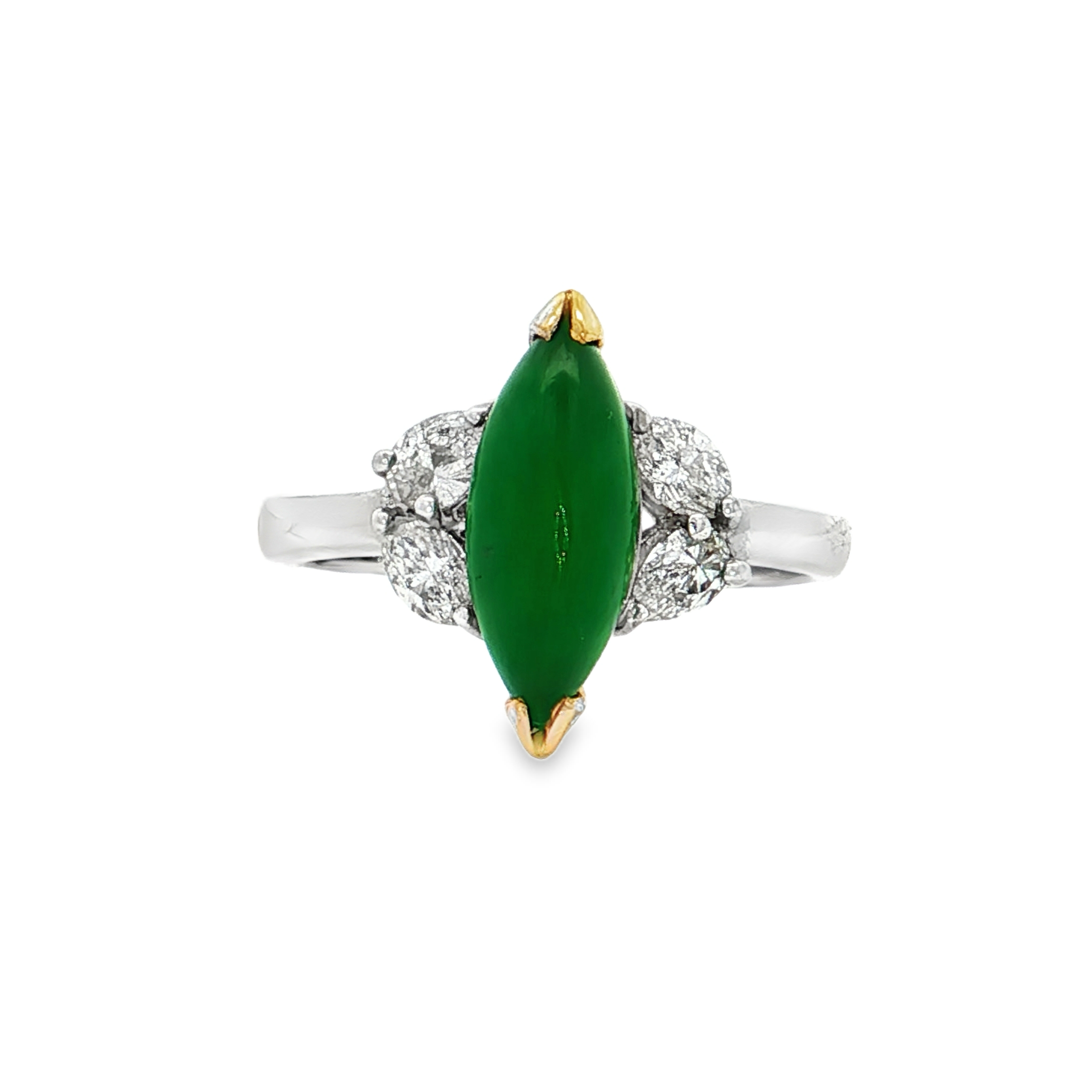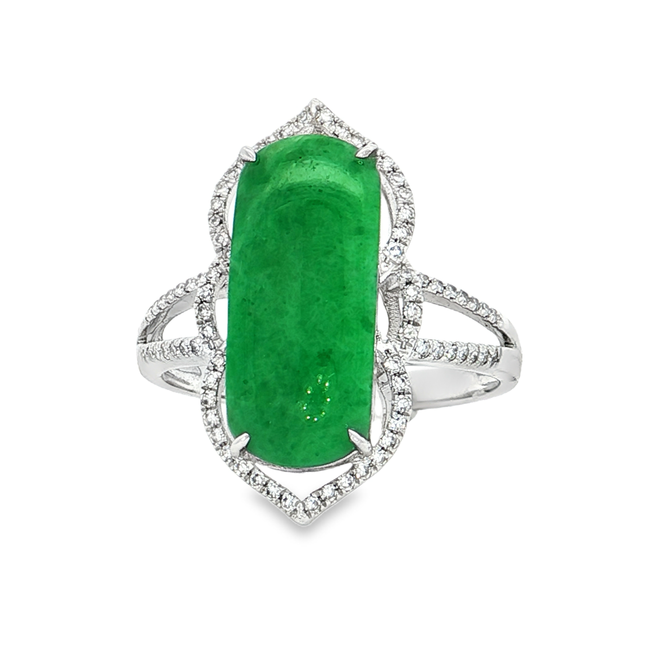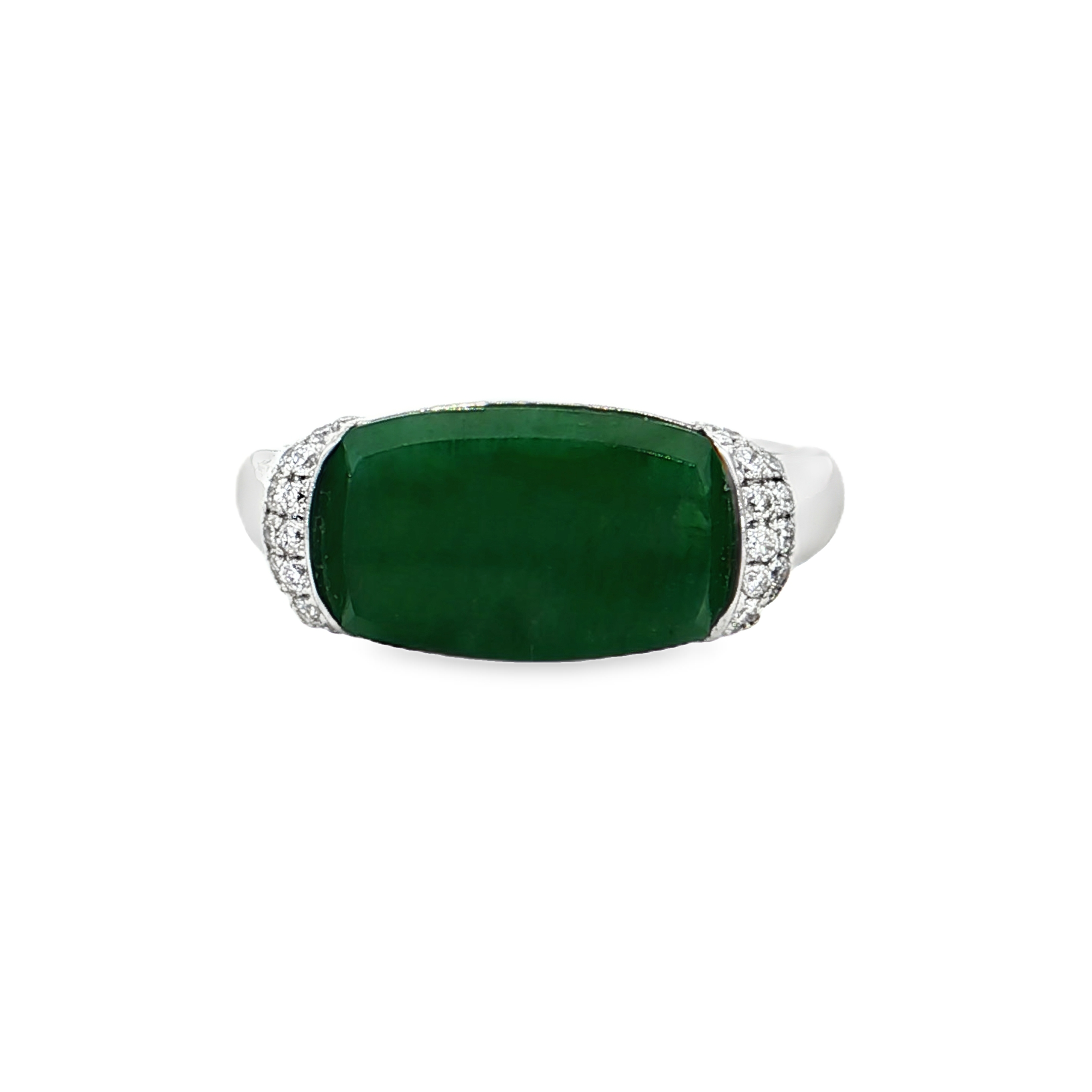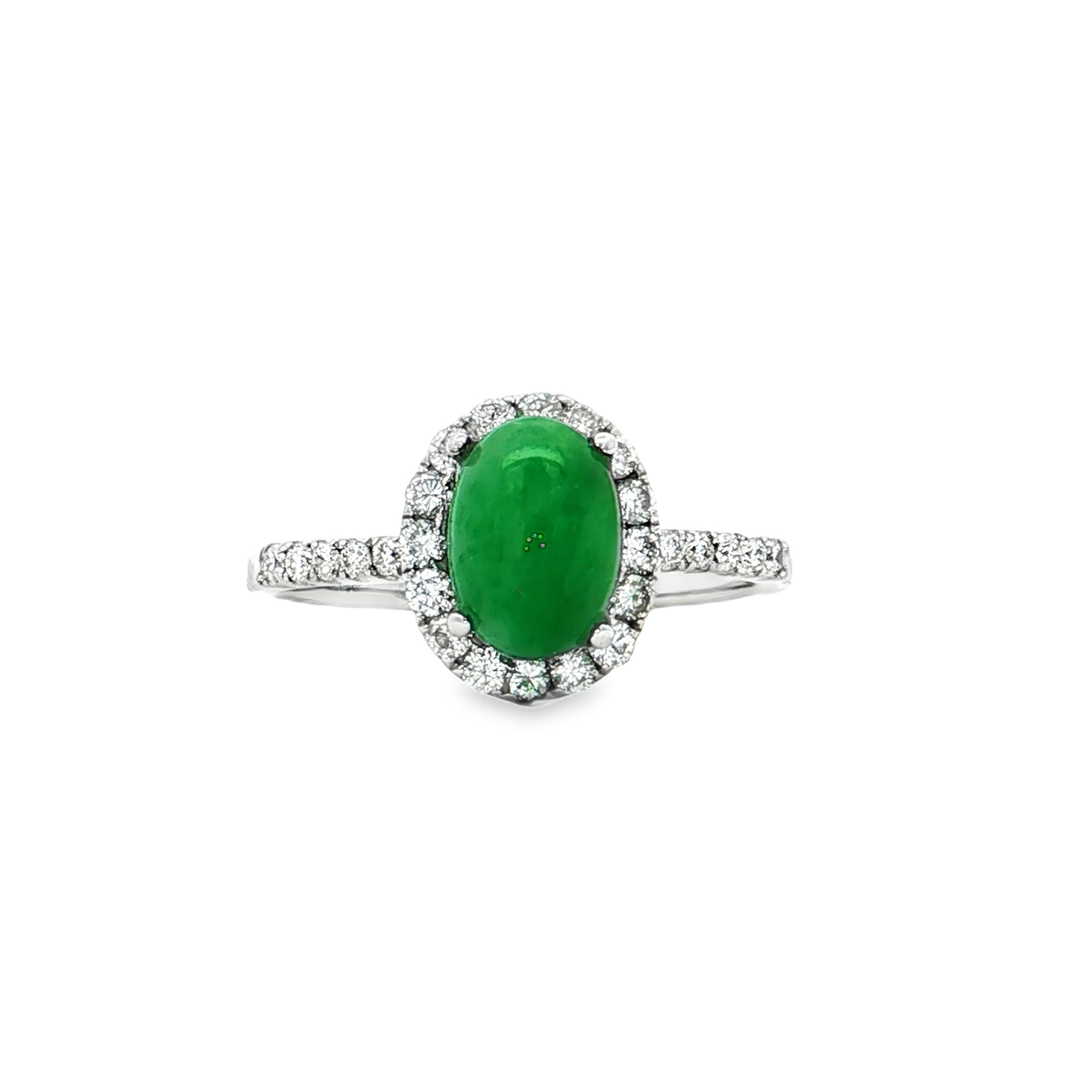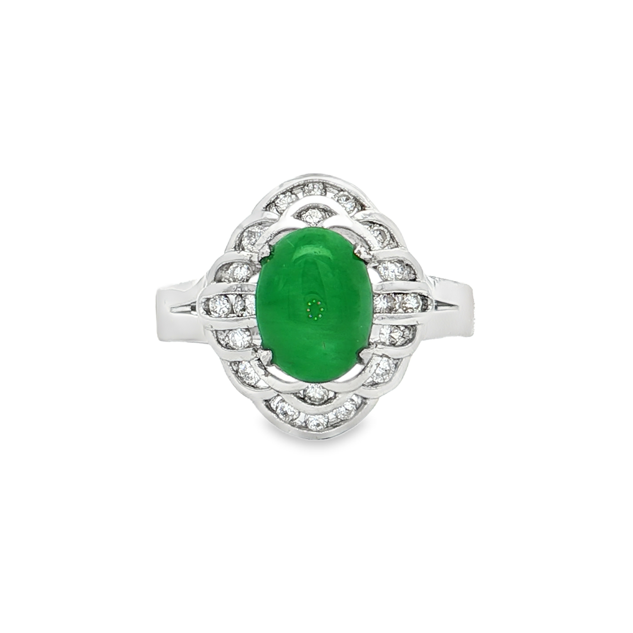18K白色黃金天然翡翠鑽石戒指