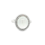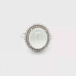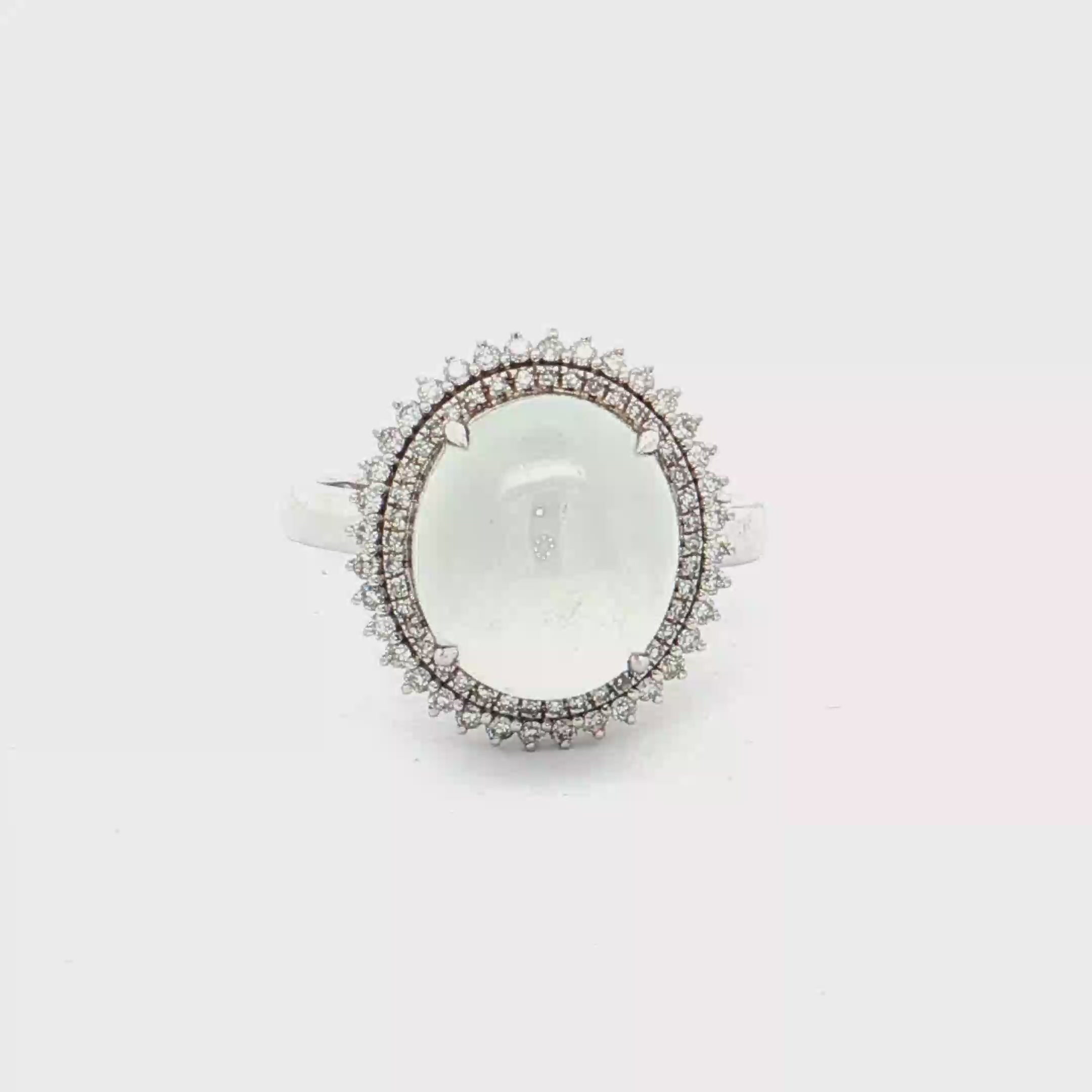 主石為橢圓形蛋面切割的翡翠,質地溫潤,呈現出柔和的綠色光彩。整體設計簡約而不失精緻,適合日常佩戴,彰顯個人品味。