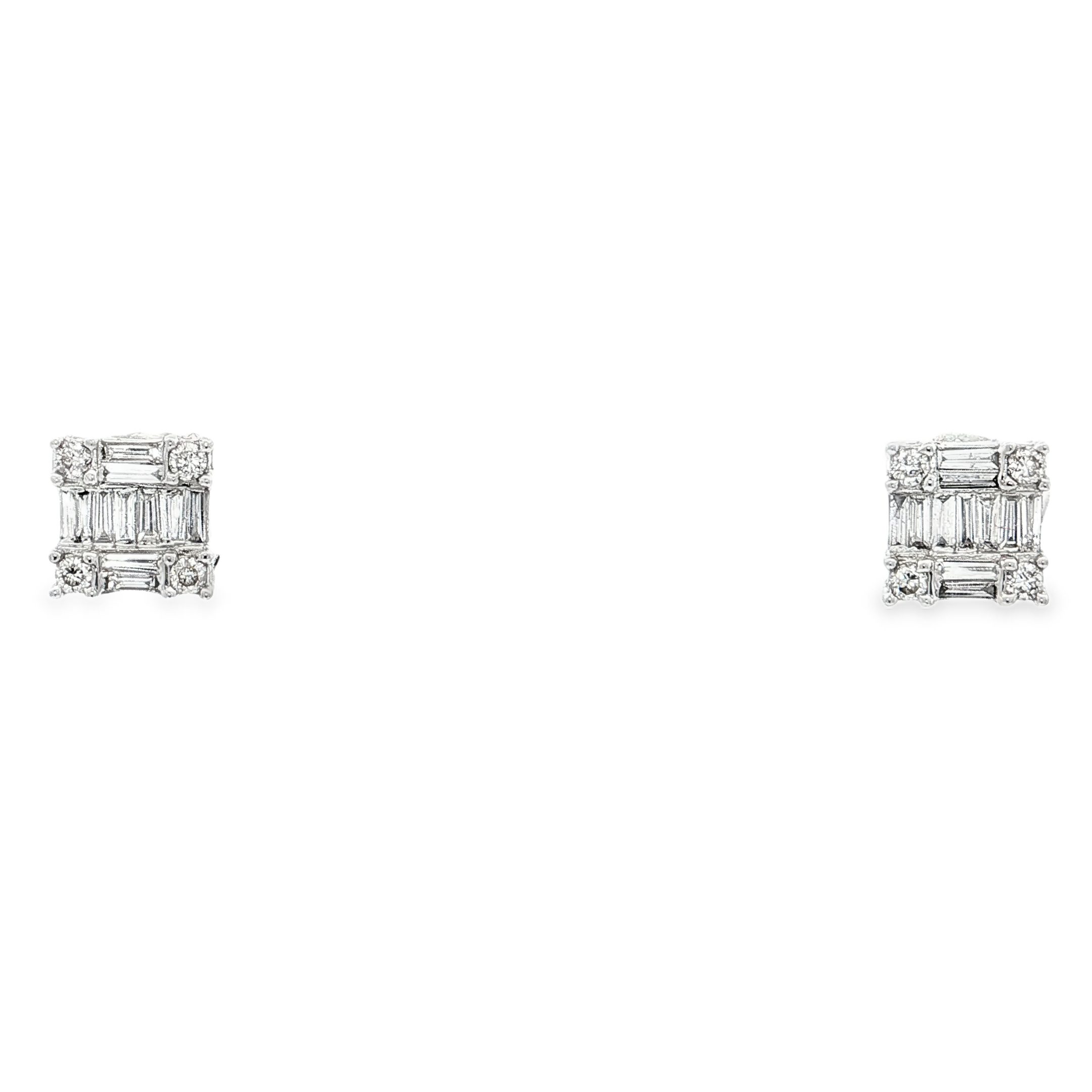 這款精緻的白金耳釘,鑲嵌著璀璨的長棍形切割鑽石,以階梯式切割展現鑽石的純淨光芒。鑽石排列精巧,散發出低調奢華的氣息。簡約的設計,完美襯托女性優雅氣質,適合日常佩戴或出席重要場合。
