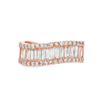這款精美的多石戒指採用璀璨的長棍形切割鑽石,鑲嵌於精緻的黃金戒托之上。鑽石以其卓越的火彩和閃耀度聞名,完美展現了其明亮式切割的精湛工藝。戒指的設計充分考慮了鑽石的透明度和淨度,確保每一顆鑽石都能呈現出最佳的光芒。拋光和對稱性均達到極佳水平,使這款戒指成為一件令人矚目的藝術品。