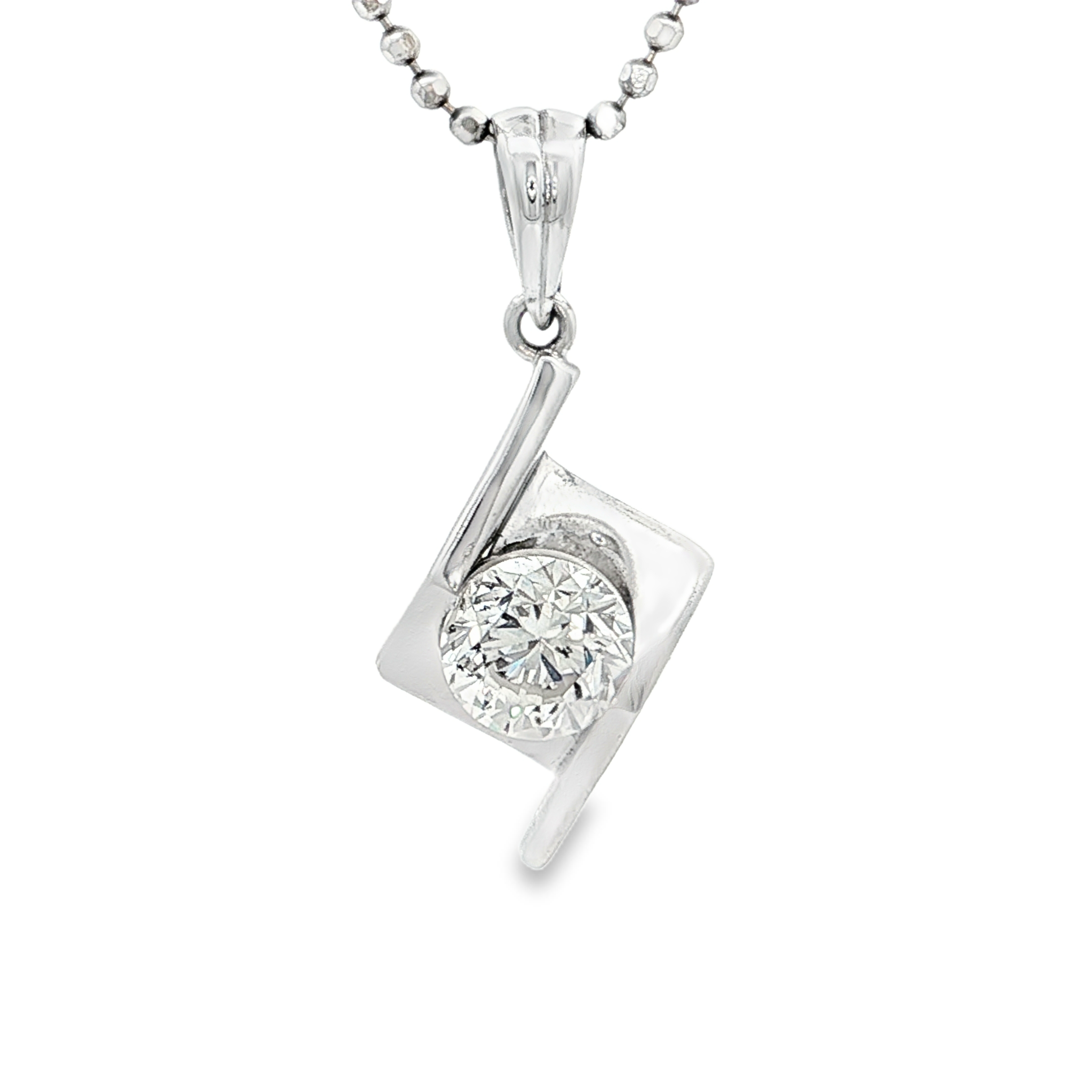 這款精緻的吊墜項鍊採用優雅的18K底座,搭配簡約的幾何線條設計,襯托出主鑽的耀眼光芒。主鑽以圓形明亮式切割,呈現經典的鑽石火彩與璀璨光芒。項鍊整體設計現代時尚,適合日常佩戴,為您的造型增添一抹精緻優雅。