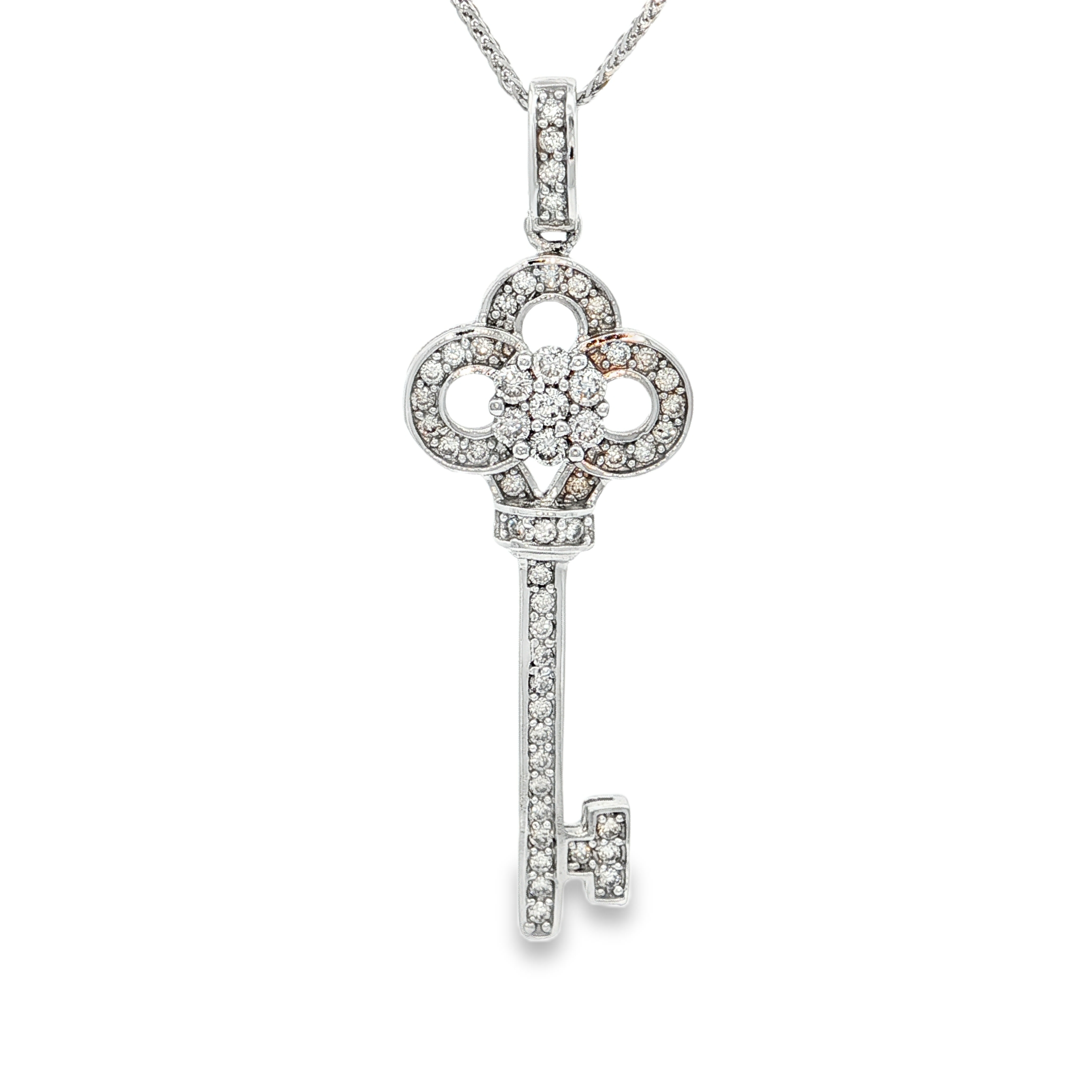 這款精緻的吊飾項鍊以優雅的18K白色黃金搭配閃耀的圓形明亮式切割鑽石,散發著低調奢華的光芒,適合日常配戴,為您的造型增添一抹亮點。完美的切割和拋光,確保每一顆鑽石都呈現出最佳的光彩和火彩。