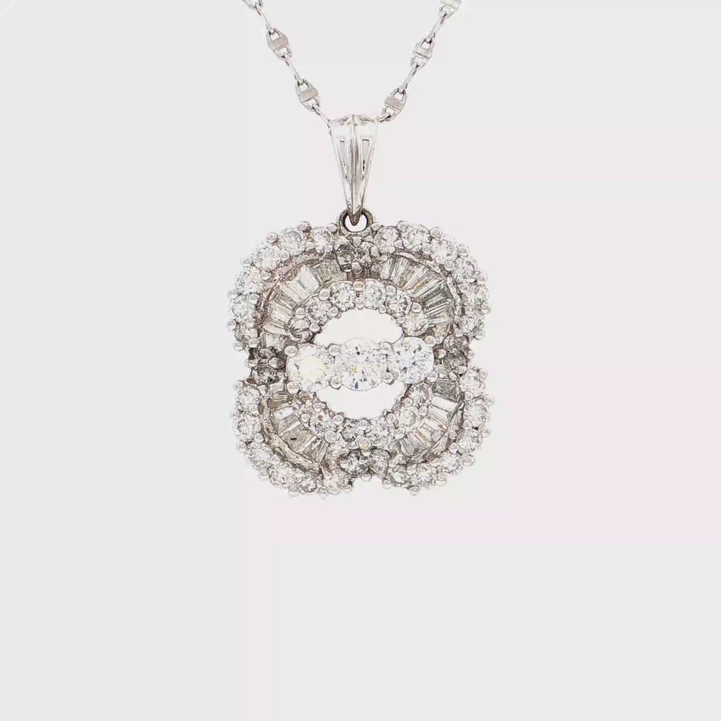 這款精緻的吊墜採用優質18K打造,並鍍以亮麗的白金,呈現出高貴典雅的氣質。吊墜主體鑲嵌圓形明亮式切割鑽石,閃耀奪目光芒。鑽石以精湛工藝排列,構成獨特造型,璀璨奪目,盡顯奢華品味。適合各種場合佩戴,為您的造型增添亮點。