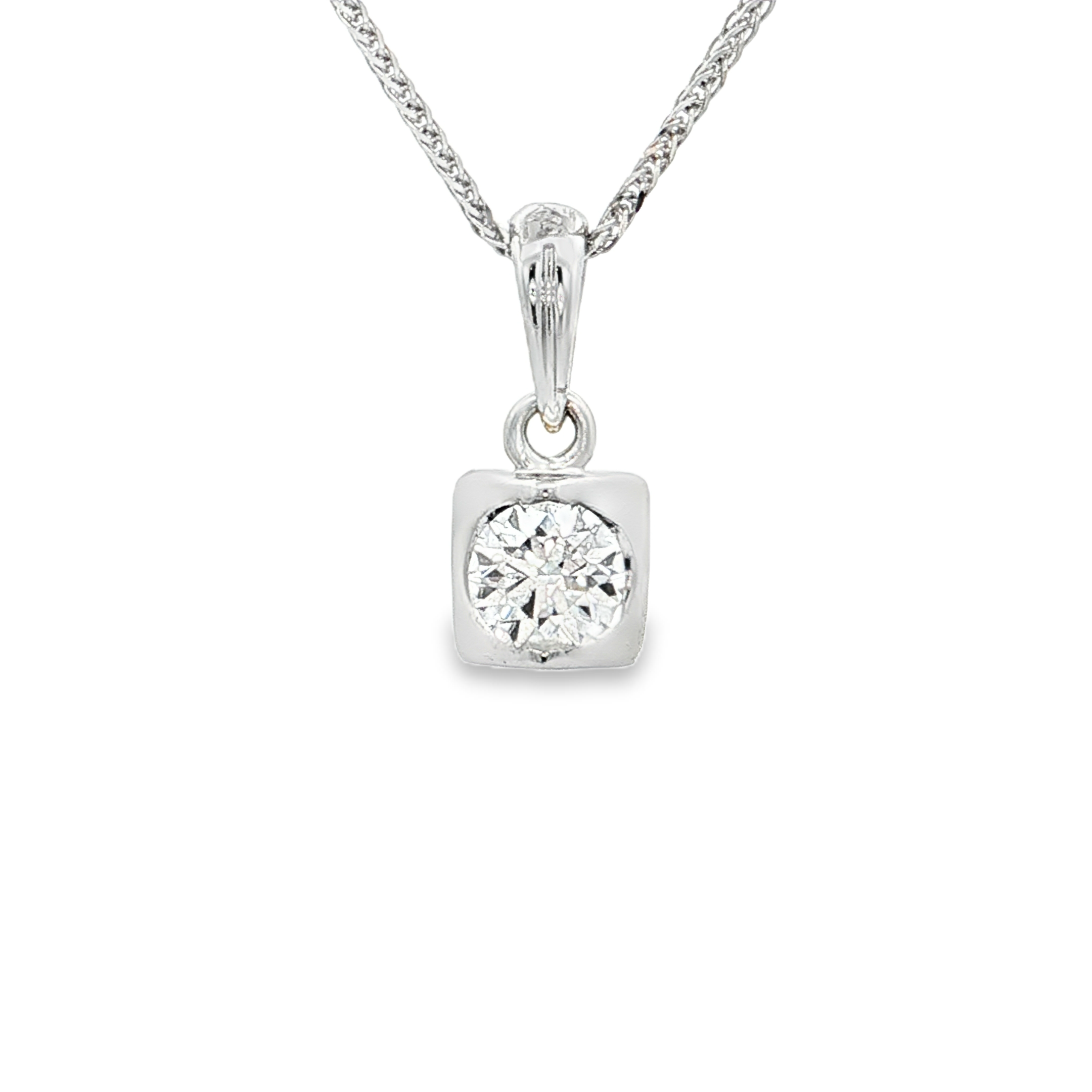 18K白色黃金天然鑽石吊墜