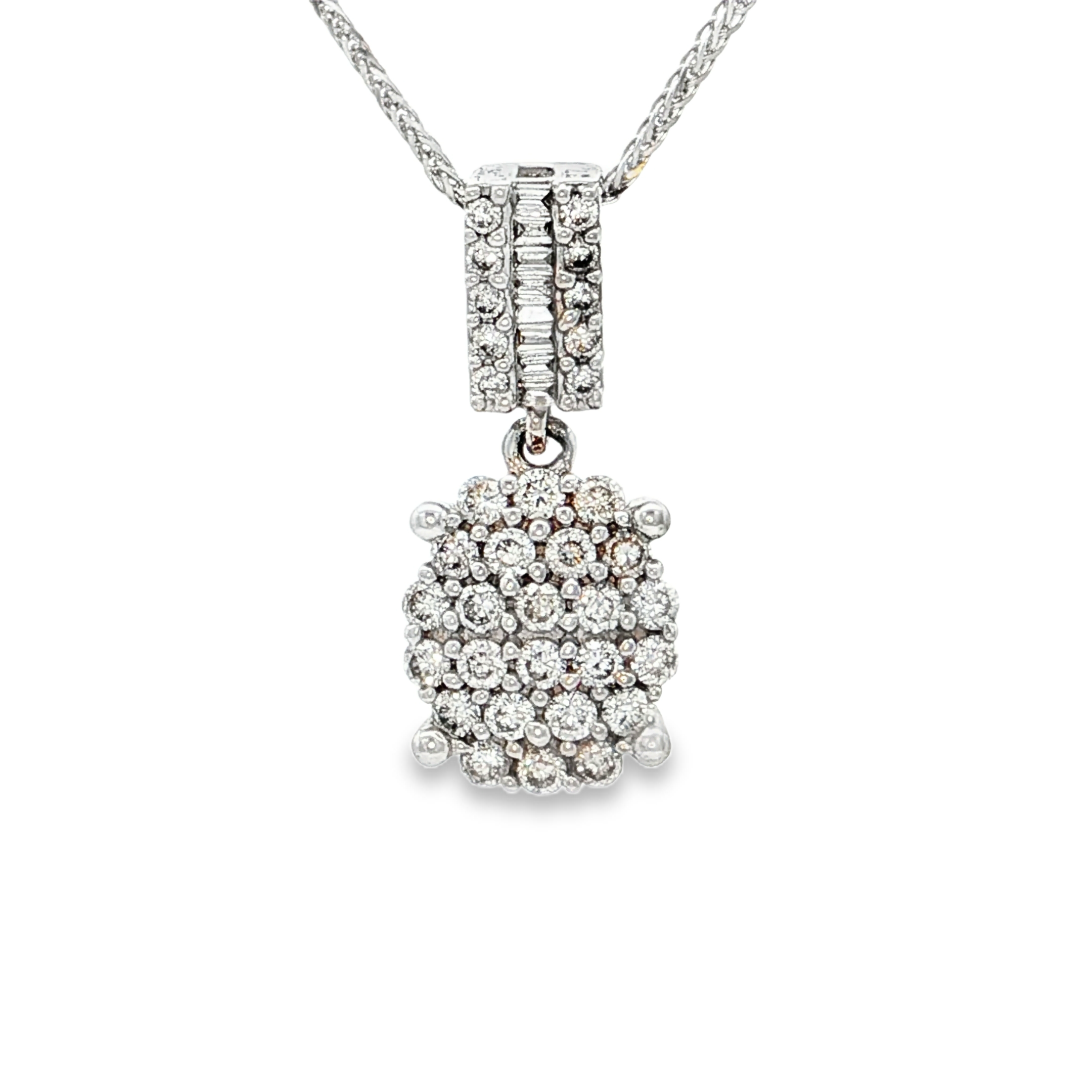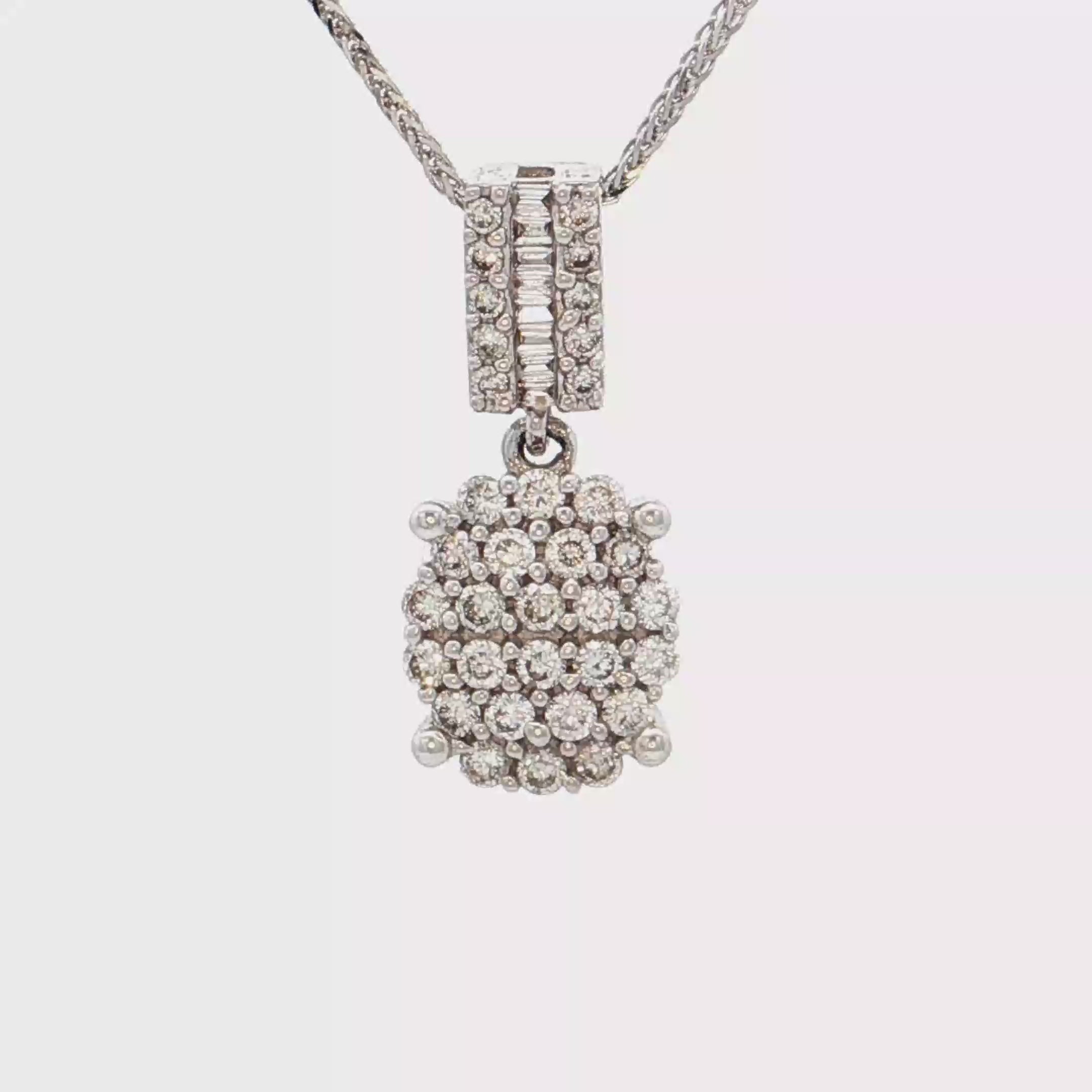 這款精美的鑽石項鍊搭配優雅的白K金,呈現出高貴典雅的氣質。項鍊主體由多顆圓形明亮式切割的鑽石精巧排列而成,散發出璀璨的光芒。鑽石的完美切割和精湛工藝,確保了其卓越的火彩和閃耀度。整體設計簡潔大方,適合各種場合佩戴,展現您的獨特品味和精緻魅力。