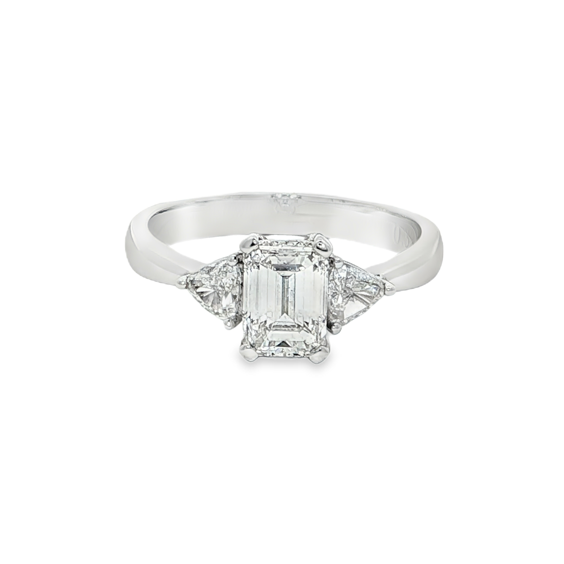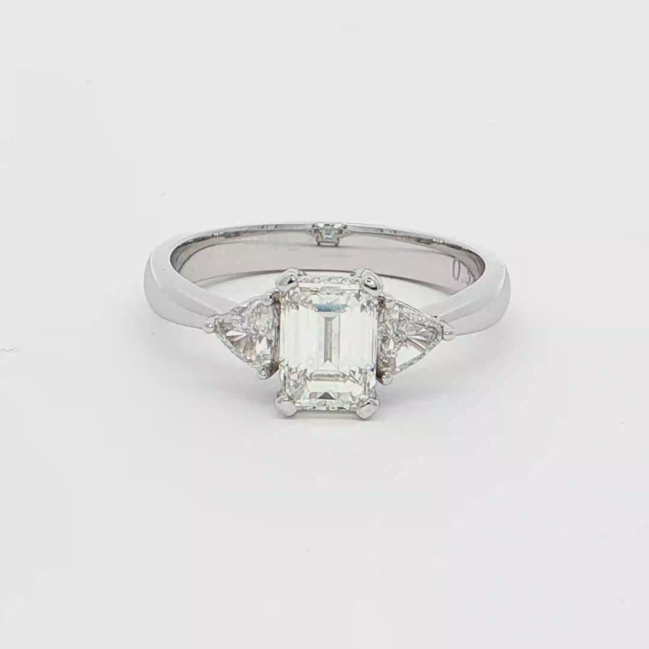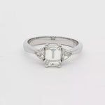 這款多石戒指採用優雅的18K白金製成,主石為一顆迷人的祖母綠切割鑽石,其獨特的階梯式切割展現了鑽石的純淨與光彩。簡潔的設計突出了鑽石的精湛工藝,適合日常佩戴,散發低調奢華的氣息。