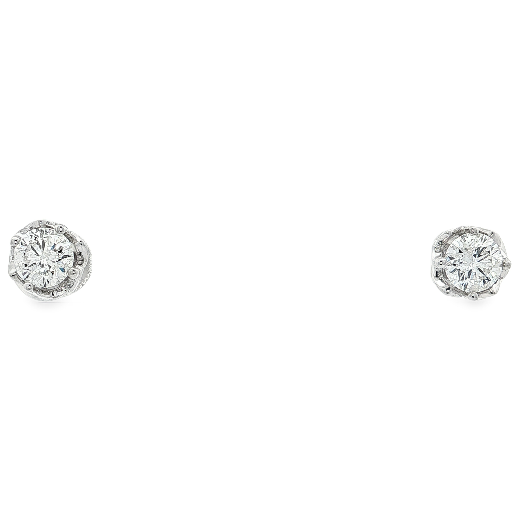 這款精緻的耳釘採用經典的圓形明亮式切割鑽石,鑲嵌於優雅的18K白色金底座上。鑽石的璀璨光芒與K金的光澤相互輝映,簡約的設計更突顯了鑽石的耀眼。無論是日常佩戴或是出席重要場合,都能為您的造型增添一份優雅氣質。