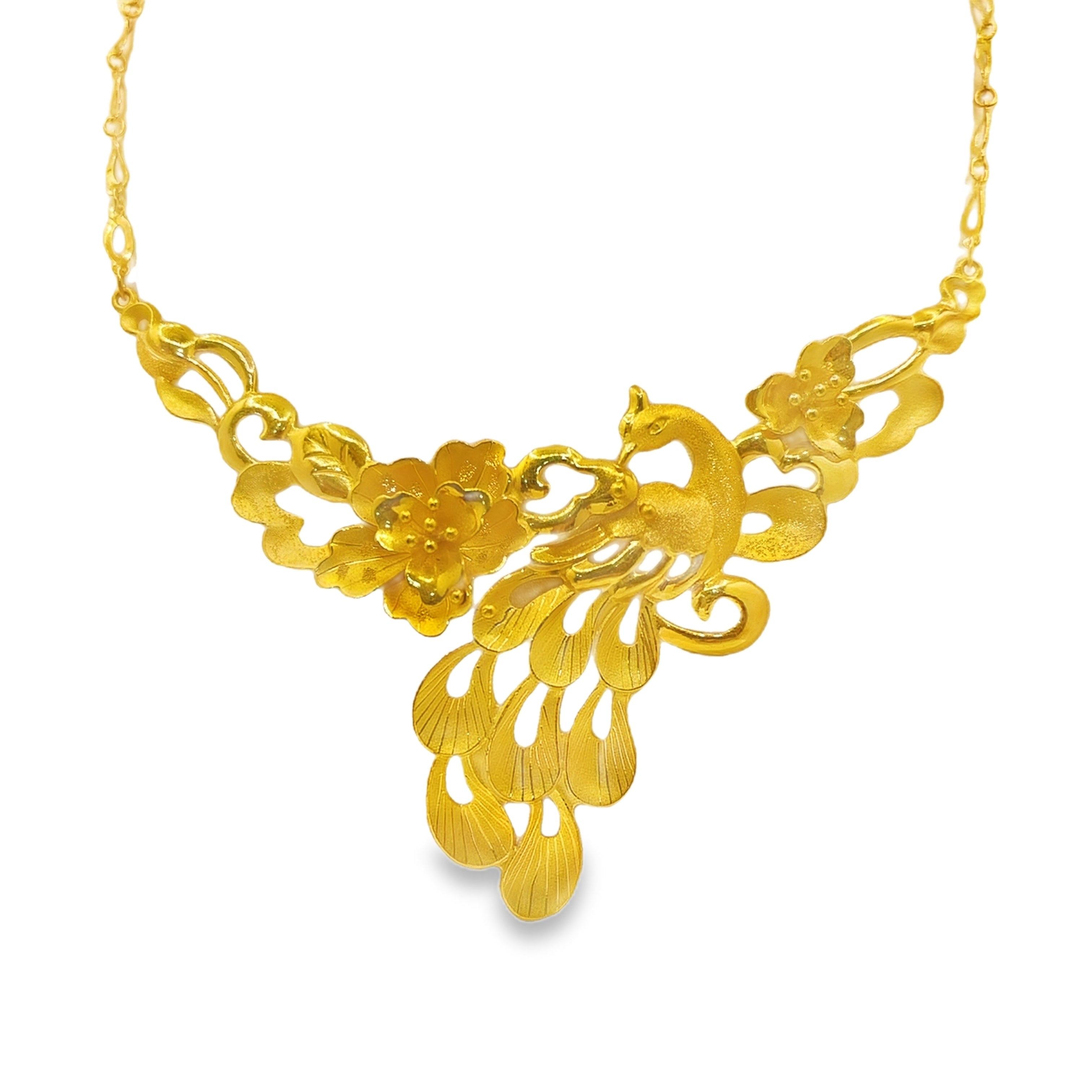 999.9黃金鳳凰花卉足金頸鍊 - 典雅設計