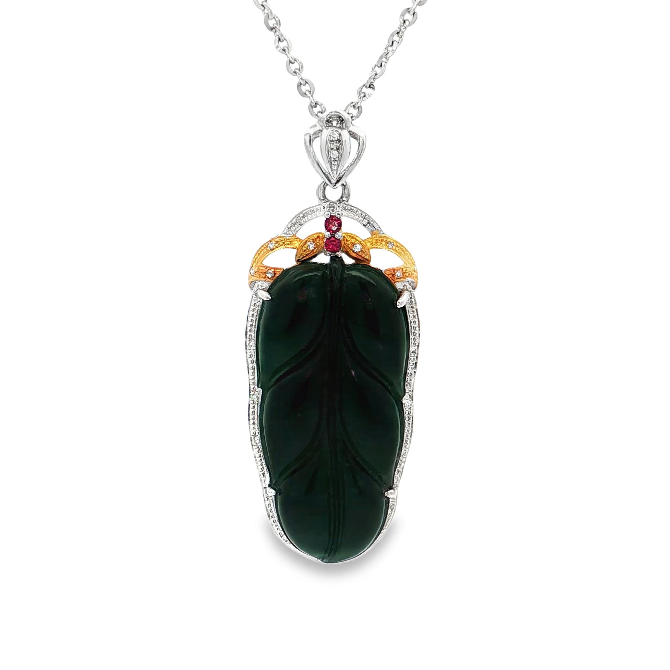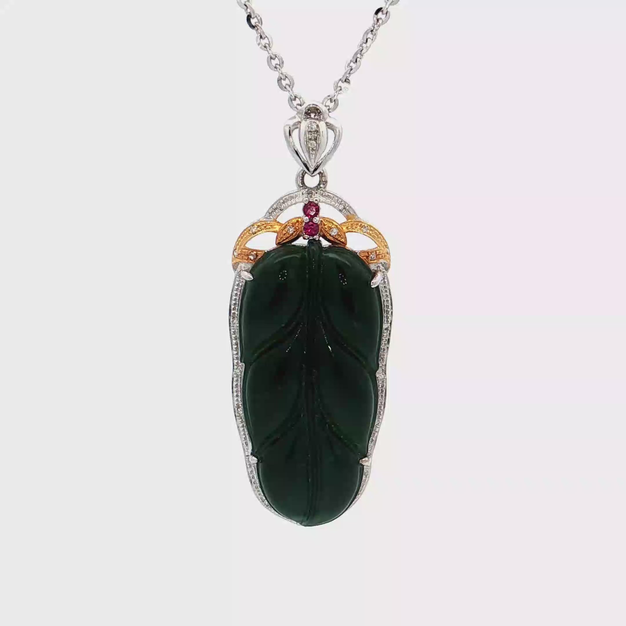 焦點落在深邃的綠色橢圓形蛋面切割翡翠上,其拋光良好,光澤內斂。翡翠的切割和對稱性展現了精湛的工藝,整體設計簡約而不失精緻,是日常配搭的理想選擇。