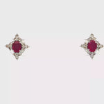 18K白色黃金天然紅寶石鑽石耳環