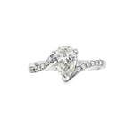 這款精緻的18K金訂婚戒指,以梨形明亮式切割鑽石為主石,散發著優雅光芒。戒指採用精湛的鑲嵌工藝,凸顯了鑽石的獨特火彩。白金戒托線條流暢,設計簡約而不失現代感,是承諾與愛情的完美象徵。適合追求經典與精緻的您。
