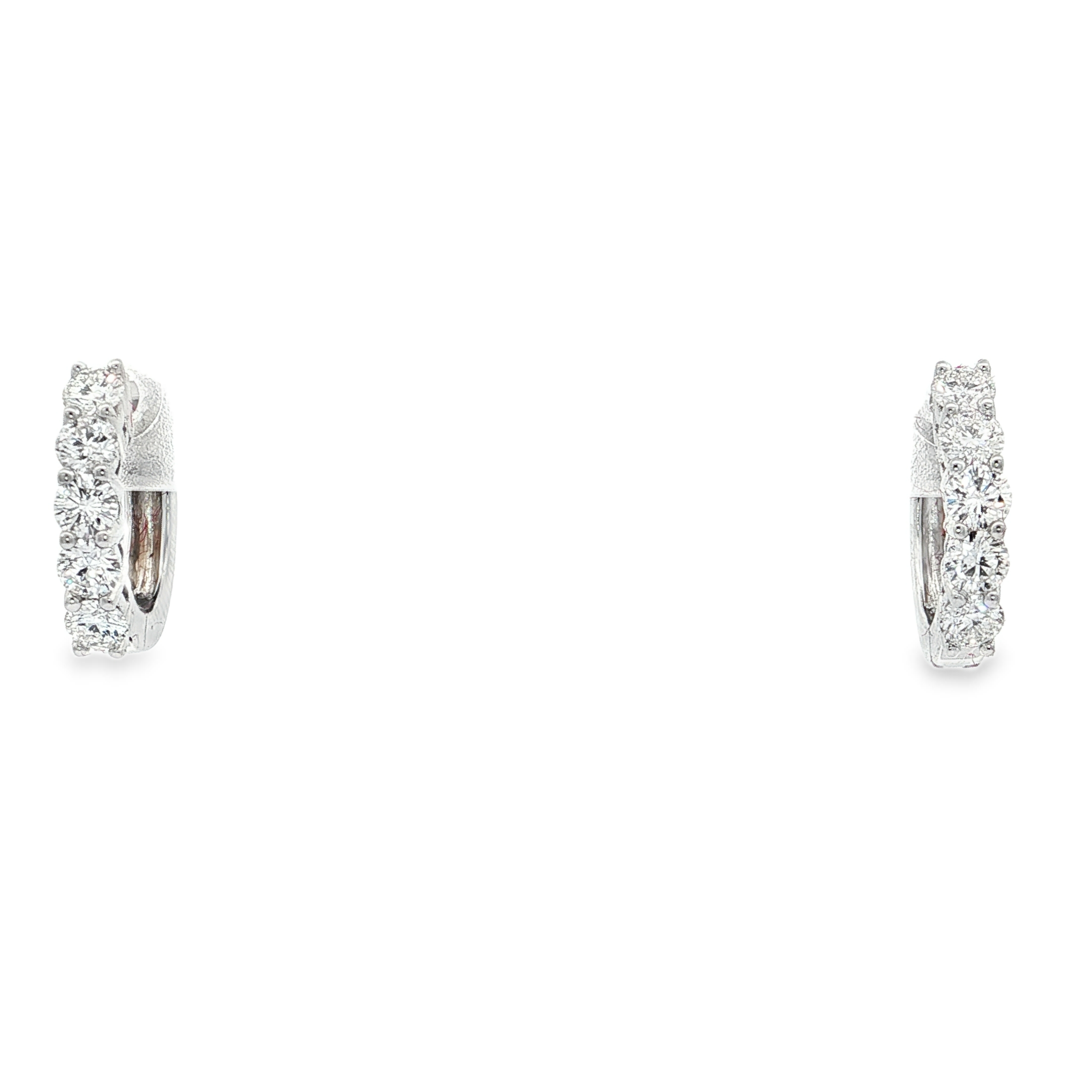這款精緻的白色K金耳環,採用高亮銀材質,設計簡約時尚,完美襯托出圓形明亮式切割鑽石的光芒。鑽石排列緊密,線條流暢,展現出卓越的切割工藝和精湛的鑲嵌技術。耳環整體設計經典百搭,適合各種場合佩戴,為您的造型增添優雅氣質。