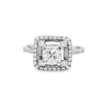 這款多石戒指採用18K金打造,呈現出經典的白色黃金光澤。主鑽為墊形切割,以其卓越的明亮式切割風格而著稱,散發出璀璨的光芒。戒指設計精緻,適合各種場合佩戴,是您珠寶收藏中不可或缺的珍品。