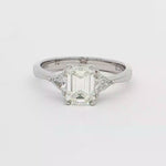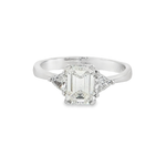 這款精美的多石戒指採用優雅的白金戒托,主石為一顆迷人的祖母綠切割鑽石,以其獨特的階梯式切割工藝展現出璀璨的光芒。簡約而現代的設計風格,完美襯托出鑽石的純淨與光彩,是品味人士的理想之選。