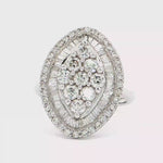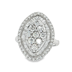 這款雞尾酒戒指採用優雅的白色金材質,鑲嵌著多顆璀璨的圓形明亮式切割鑽石。鑽石閃耀奪目,營造出華麗的光芒。設計精巧,適合在各種特殊場合佩戴,展現您獨特的時尚品味。