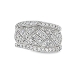 這款精美的白金多石戒指,以其精湛的工藝和璀璨的設計著稱。戒指鑲嵌多顆圓形明亮式切割鑽石,鑽石閃爍的光芒,為您的指間增添一份優雅和奢華。白金材質的戒圈,線條流暢,佩戴舒適,適合日常佩戴或特殊場合。