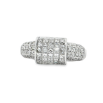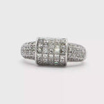 這款精美的戒指採用優雅的白金製成,鑲嵌多顆公主方形切割的鑽石,以精湛的工藝呈現出璀璨的光芒。鑽石的閃耀與幾何線條的完美結合,彰顯出現代女性的優雅品味和獨立精神。無論是日常佩戴還是特殊場合,都能為您增添獨特魅力。