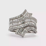 這款多石戒指以精緻的白金打造,呈現出令人驚豔的設計。戒指上鑲嵌著多顆明亮式切割的圓形鑽石,每一顆都經過精挑細選,確保其優異的火彩和閃耀度。鑽石的排列和鑲嵌工藝都展現了卓越的珠寶製作技巧,使這款戒指成為一件真正引人注目的藝術品。