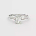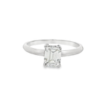 這款精緻的戒指以簡潔的白金戒托烘托出主鑽的耀眼光芒。主鑽採用經典的祖母綠切割,呈現階梯式切面,散發出沉穩而高貴的氣息。簡約的設計風格突顯了鑽石本身的美麗,適合追求經典與優雅的您。