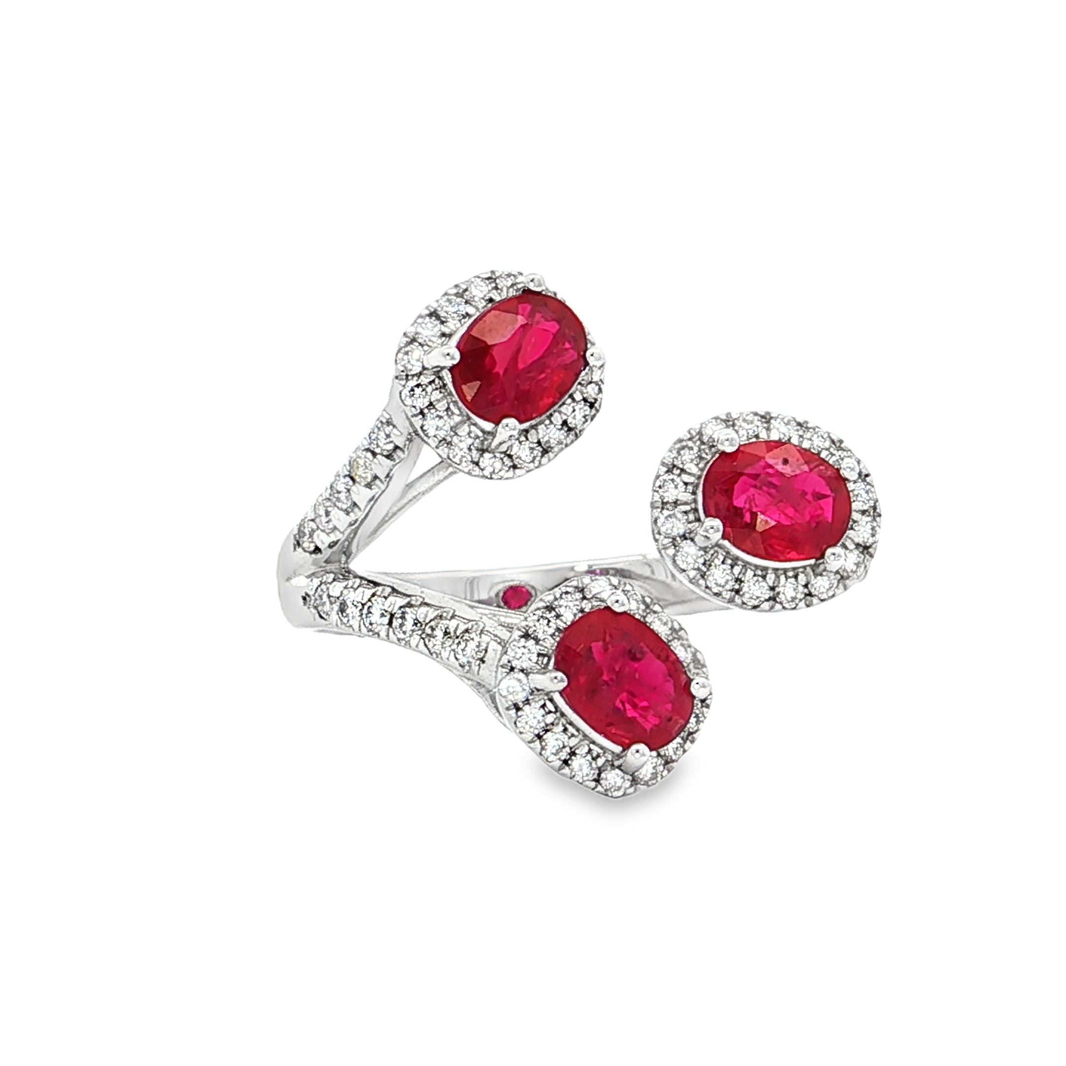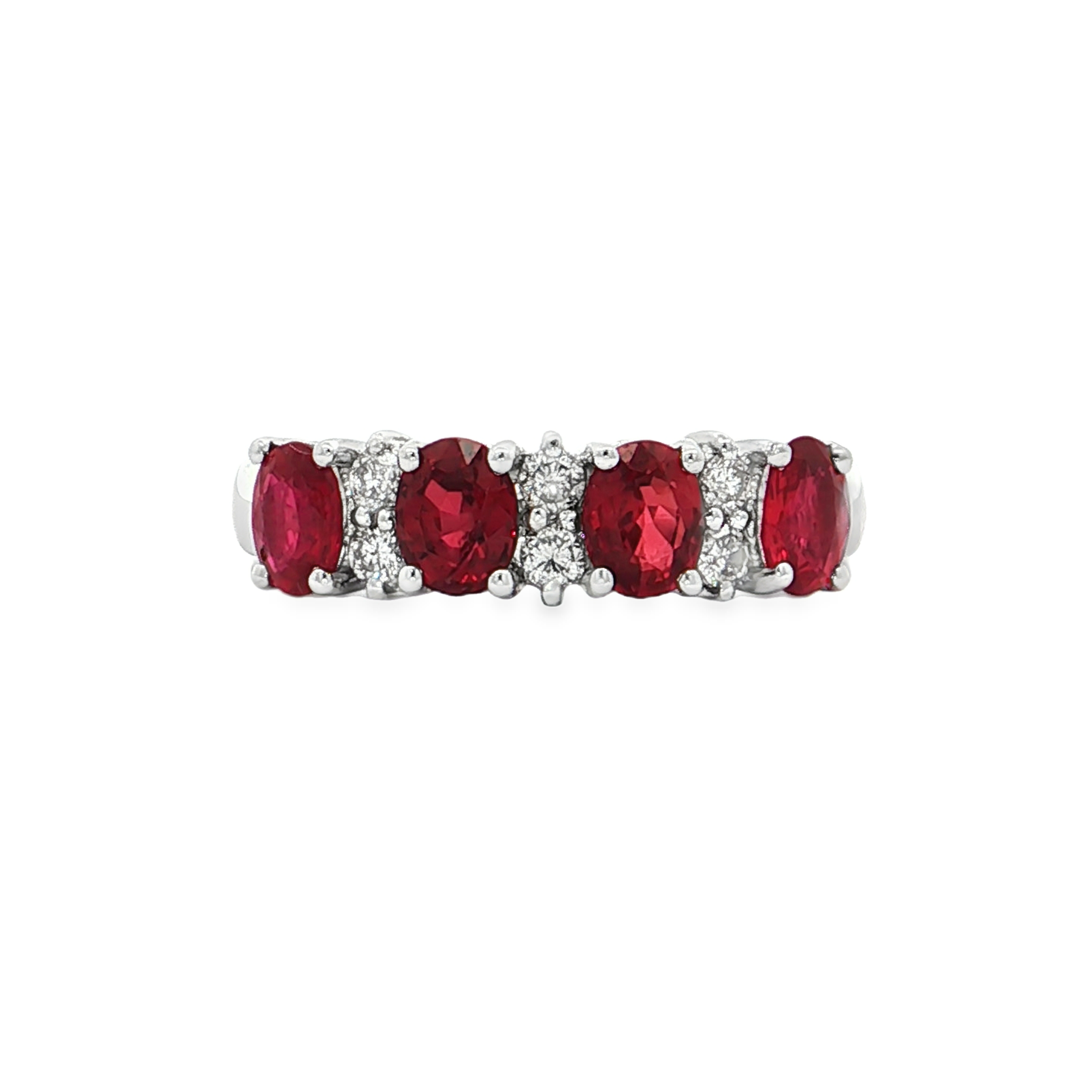 18K白色黃金天然紅寶石鑽石戒指
