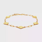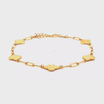 這款精緻的18K黃金手鍊,以其簡約的鏈條設計和四葉草圖案展現優雅氣質。精工細作的金飾散發著溫潤光澤,為您的手腕增添一抹亮色。適合日常佩戴,亦是饋贈親友的理想之選。