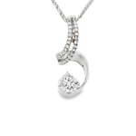 這款精緻的18K金鑽石項鍊,以其優雅的曲線和閃耀的圓形明亮式切割鑽石,完美展現出現代女性的精緻品味。白金色的光澤與鑽石的璀璨相互輝映,無論是日常佩戴或是特殊場合,都能為您的造型增添一抹亮色。