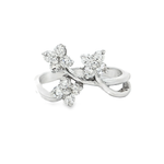 這款精緻戒指以18K白金為基底,鑲嵌多顆圓形明亮式切割鑽石,呈現出璀璨奪目的光芒。鑽石排列精巧,組成多石簇擁的設計,突顯其火彩和閃耀度。戒指設計簡潔優雅,適合日常佩戴,亦能為特殊場合增添亮點。戒指上帶有標記,更增添其獨特性。