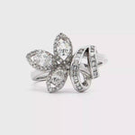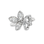 這款雞尾酒戒指以優雅的白金打造,呈現出精緻的花朵造型。主石為一顆明亮式切割的橢圓形鑽石,閃耀奪目,散發出迷人的光芒。鑽石的精湛切割工藝,更凸顯其璀璨光彩,為整體設計增添了奢華感。是一款適合在特殊場合佩戴,展現個人品味的完美之選。