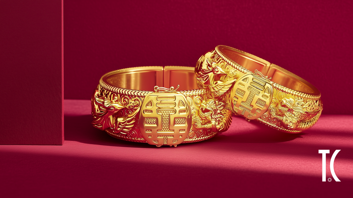 999.9黃金龍鳳鈪系列,以純金呈現象徵和合與祝福的經典龍鳳紋樣。除傳統款外,更推出立體感更強、深受新人喜愛的 3D 龍鳳鈪,份量感十足,亮眼又喜慶,是見證大日子嘅華麗之選。