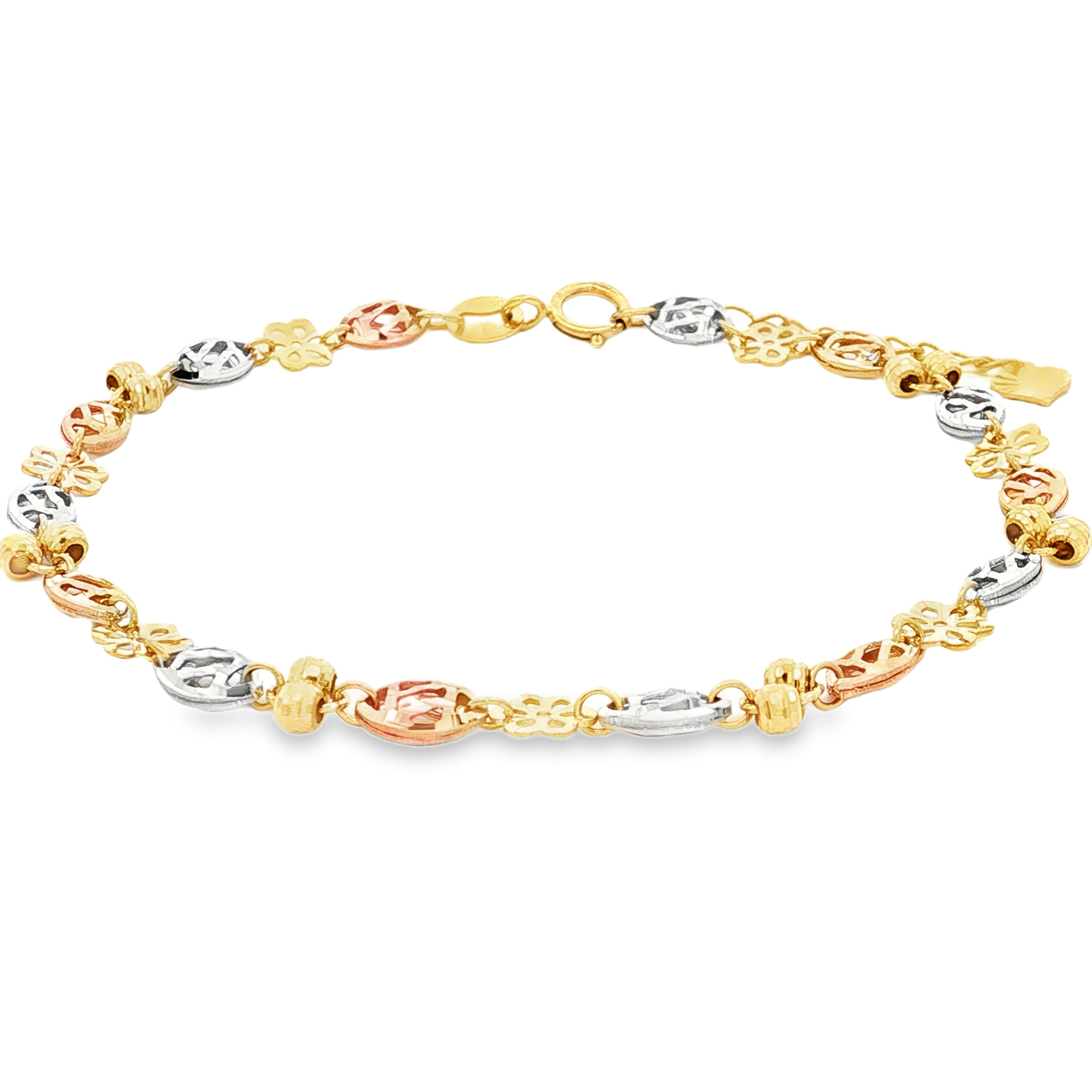 這款精緻的18K黃金手鍊,以其獨特的鏈條設計脫穎而出。多種金色的組合,包括經典的黃金、浪漫的玫瑰金和時尚的白金,營造出豐富的視覺層次感。每個鏈節都經過精細打磨,確保佩戴的舒適度。適合日常穿搭,為您的造型增添一抹優雅氣息。