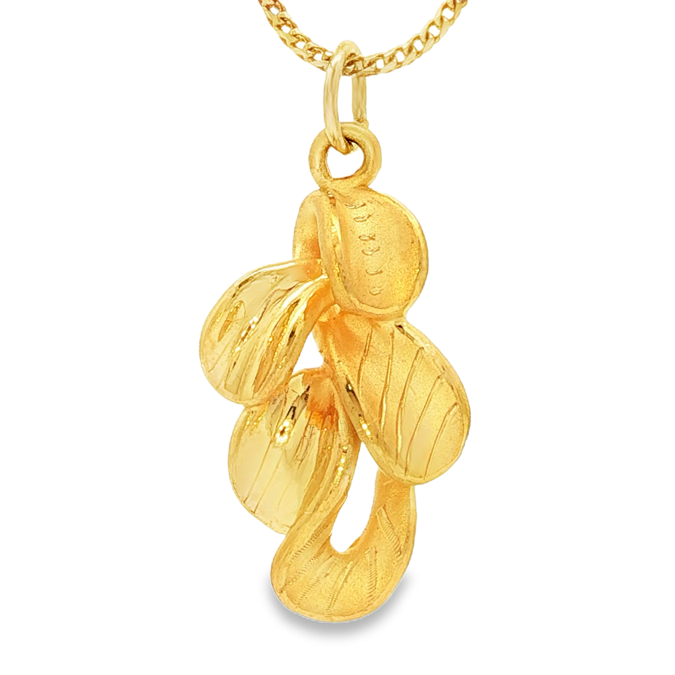 這款精緻的黃金吊墜,以優雅的花瓣造型呈現,設計獨特而富有藝術感。黃金材質散發溫潤光澤,精湛工藝雕琢出細膩紋理,無論是日常穿搭還是特殊場合,都能為您增添一抹亮麗色彩。適合追求品味與時尚的您。