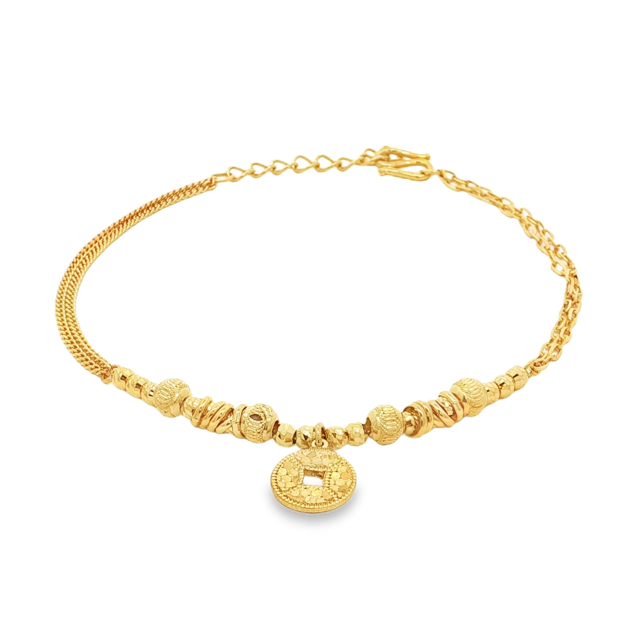 這款精緻的金質幸運草手鍊,以經典幸運草造型為靈感,每個幸運草都飾有精細的紋理,增添了獨特的光澤感。手鍊由高品質黃金製成,鏈條設計簡約優雅,適合日常佩戴,為您的造型增添一份幸運與精緻。